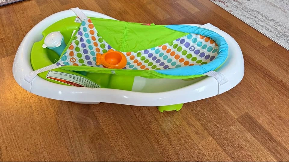 10Fisher-Price Baby to Toddler Bath 4-in-1 Sling ‘n Seat Tub with Removable Infant Support and 2 Toys. Barely used.