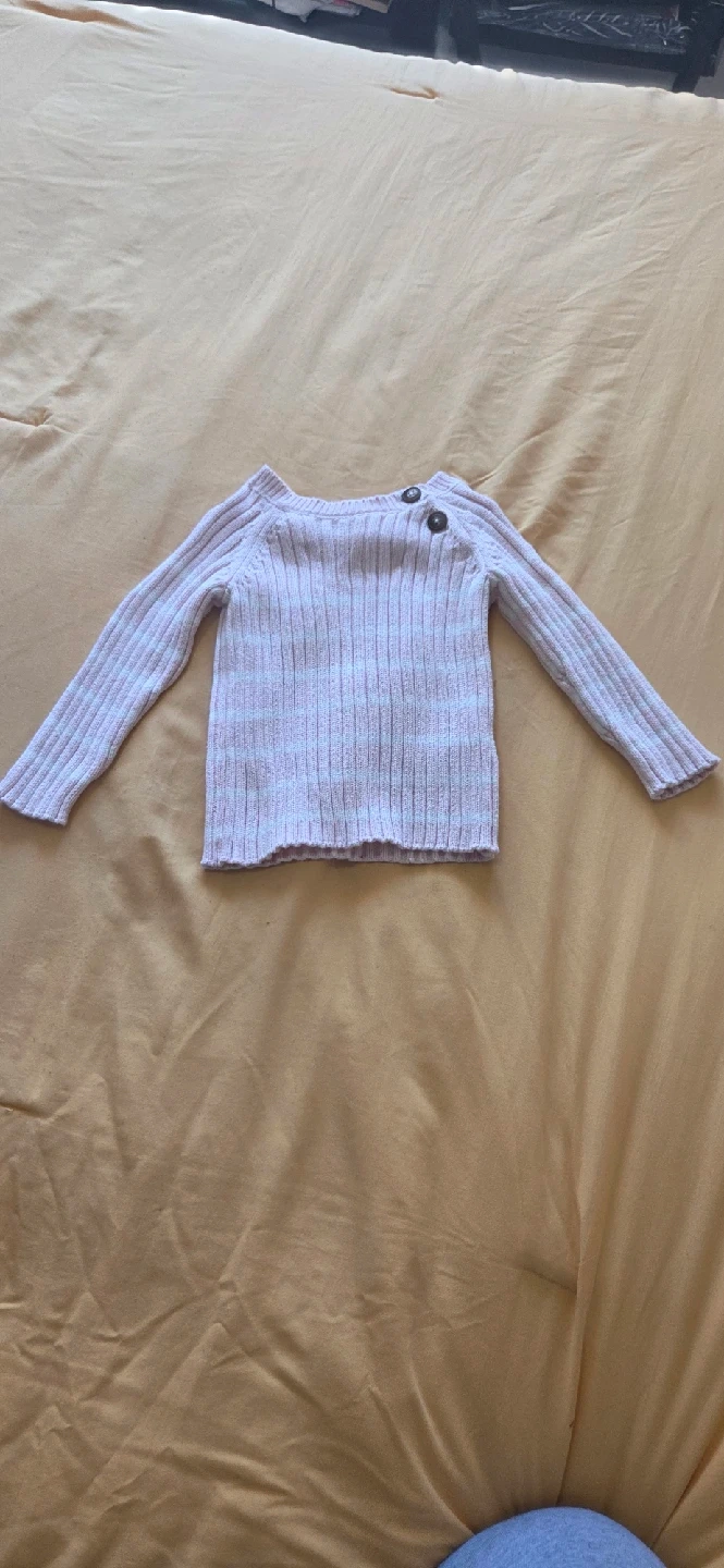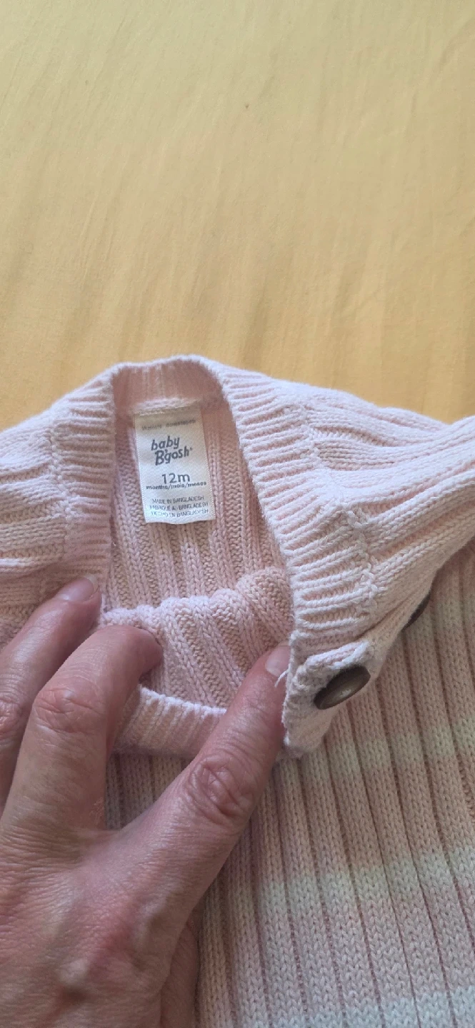 76A cute Baby B'gosh knit set in pink and white stripes, perfect for your little one! The set includes a long-sleeved top and matching pants, both in a soft, ribbed knit. The top features button details at the shoulder. Size is 12-18 months.