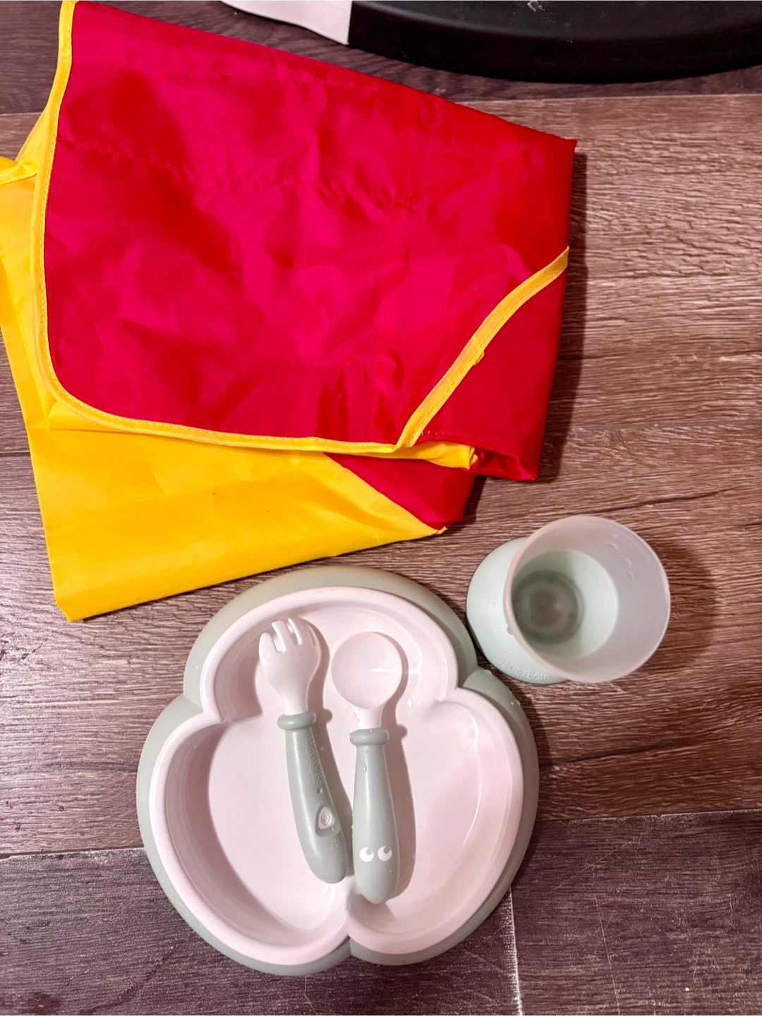 114Selling a Baby Bjorn feeding set! Includes a plate, spoon, fork, cup, and bib. Perfect for starting solids or for toddlers learning to feed themselves. Gently used and ready for a new home!