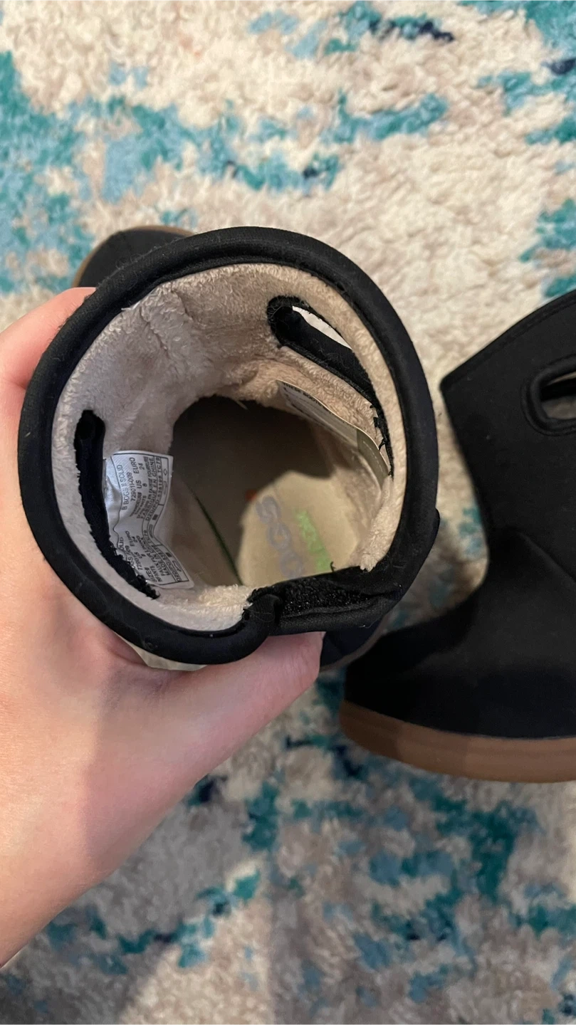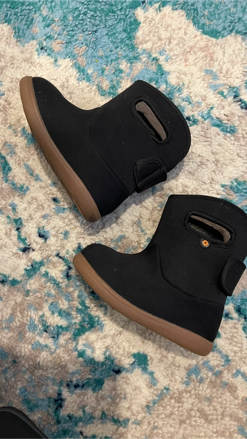 65Selling a pair of Bogs waterproof boots in black, size 8 toddler. These boots are in great condition and ready for some puddle jumping! They feature a comfy lining to keep little feet warm and cozy. Pick up inly, cash only