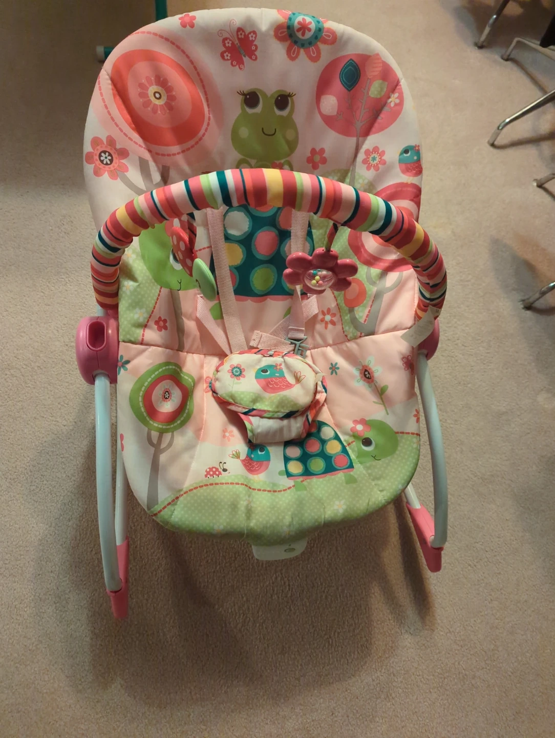 10Selling a baby bouncer seat in great condition! It features a colourful design with cute animals and patterns. Perfect for keeping your little one entertained and comfortable. It's lightweight and easy to move around the house too!