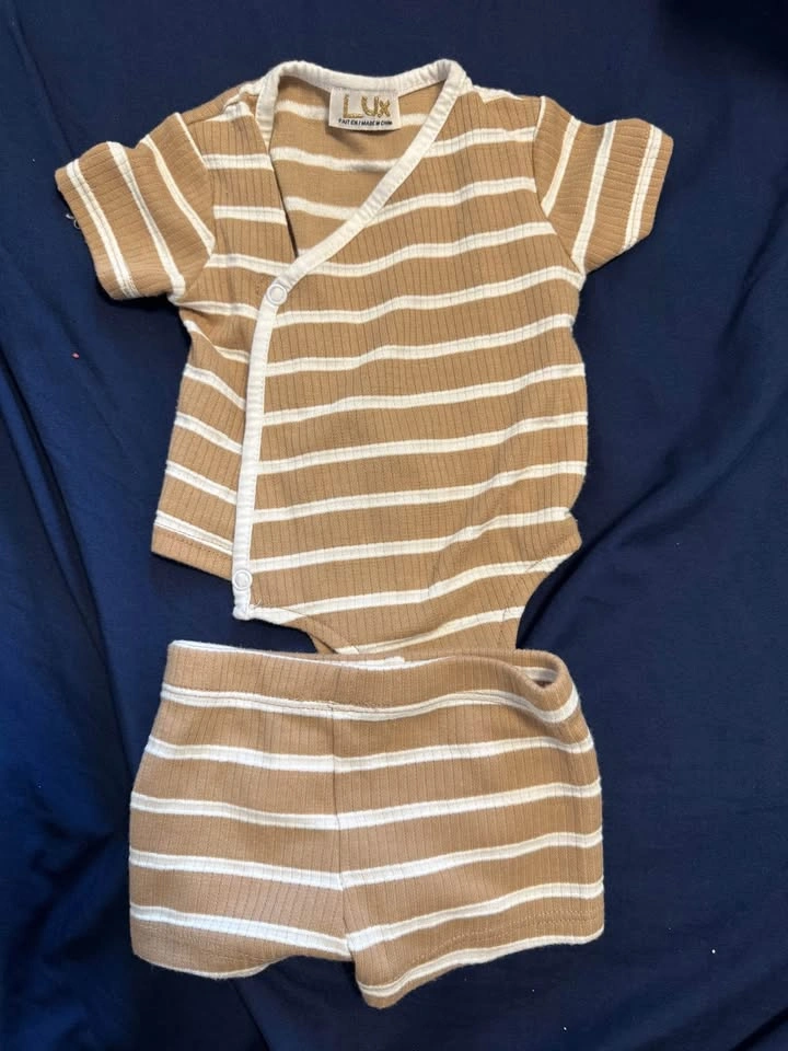 LUX Baby Outfit - Brown & White Stripes- 0-3 months