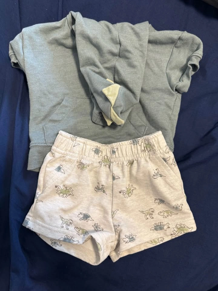 Carters Baby Outfit - Hoodie & Dinosaur Shorts 0-3 months