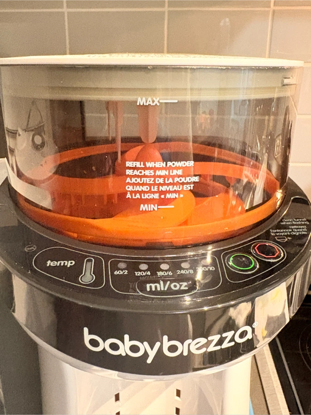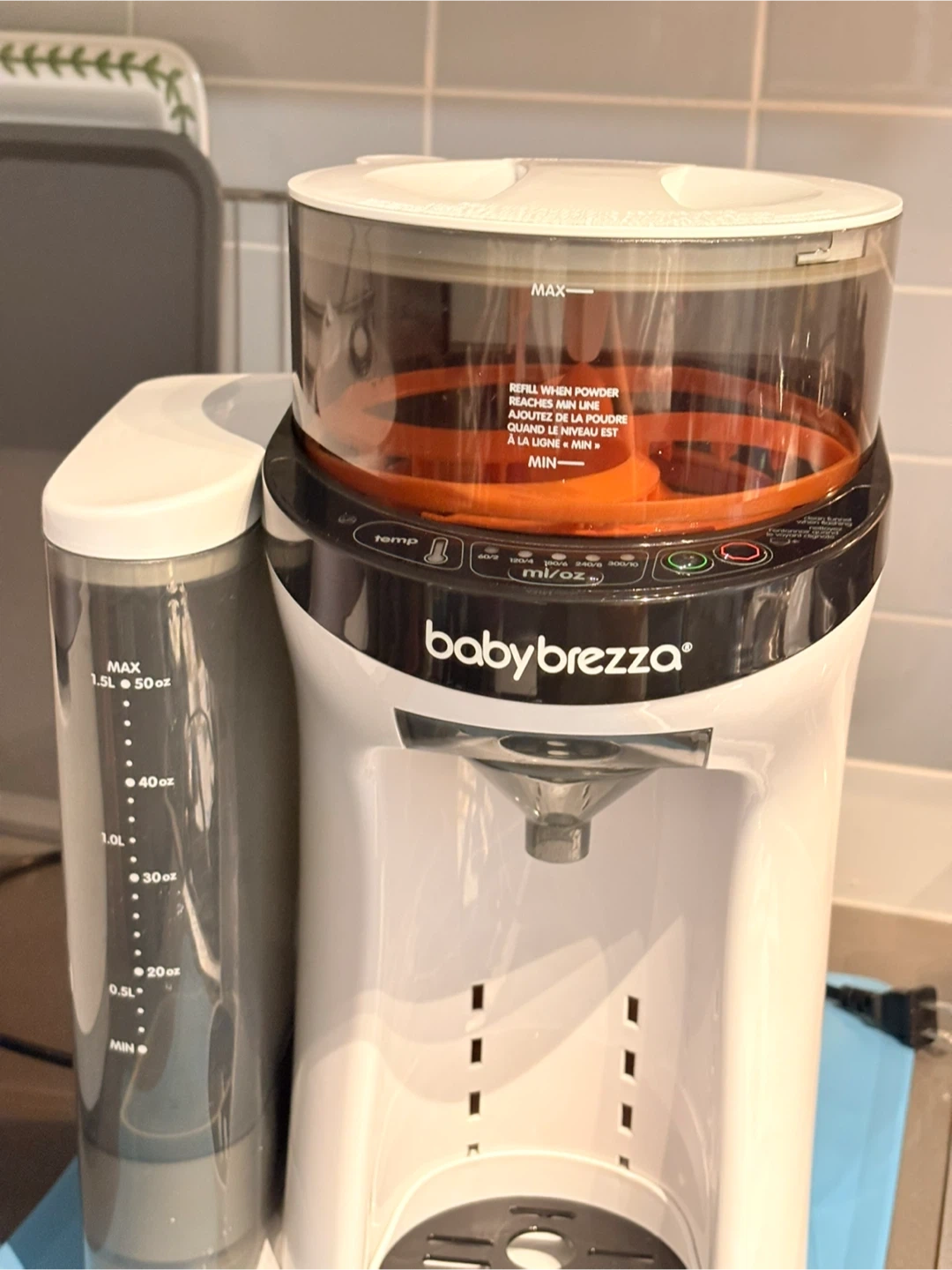 The Baby Brezza Formula Pro (2017 model), often referred to as the Formula Pro One Step Food Bottle Maker, was the original automatic formula dispenser from Baby Brezza, preceding the later Formula Pro Advanced version. It was designed to simplify bottle preparation by automating the mixing and heating process for powdered baby formula. Key Features • Automatic formula dispenser similar to a coffee maker. • Mixes water and formula powder automatically at the touch of a button. • Holds water and formula in separate compartments for multiple bottles before refilling. • Maintains ideal feeding temperature (about body temperature). • Works with most major formula brands. (requires correct measuring wheel setting).[babybrezza] • Prepares bottles in under 30 seconds.