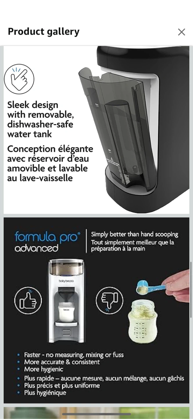 39Selling a Baby Brezza Formula Pro Advanced! It automatically mixes, heats, and dispenses formula in seconds, making bottle prep a breeze. It works with virtually all formula brands and bottle types. The sleek design includes a removable, dishwasher-safe water tank. Dimensions are approximately 38 cm tall, 19 cm wide, and 30.5 cm deep. Faster, more accurate & consistent, and more hygienic than hand scooping!