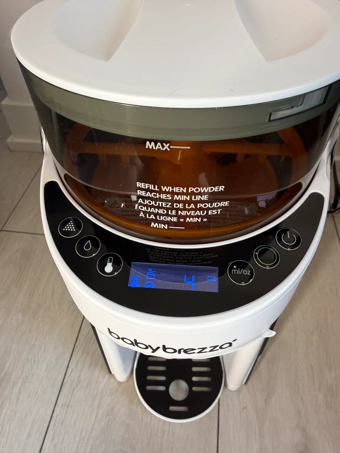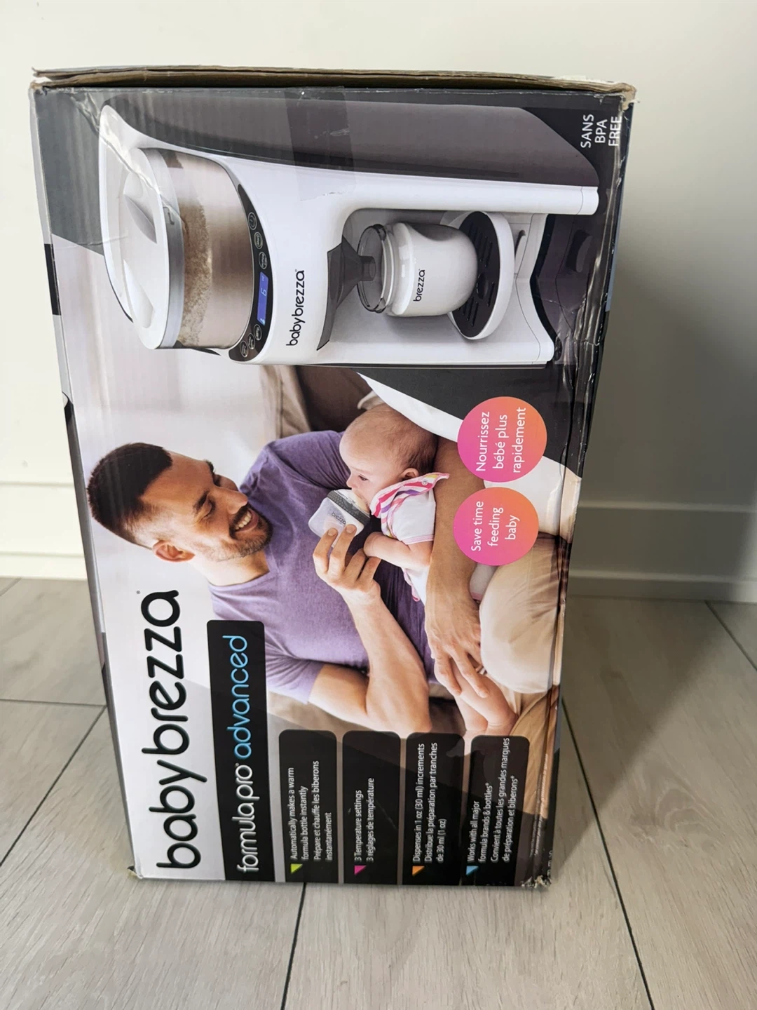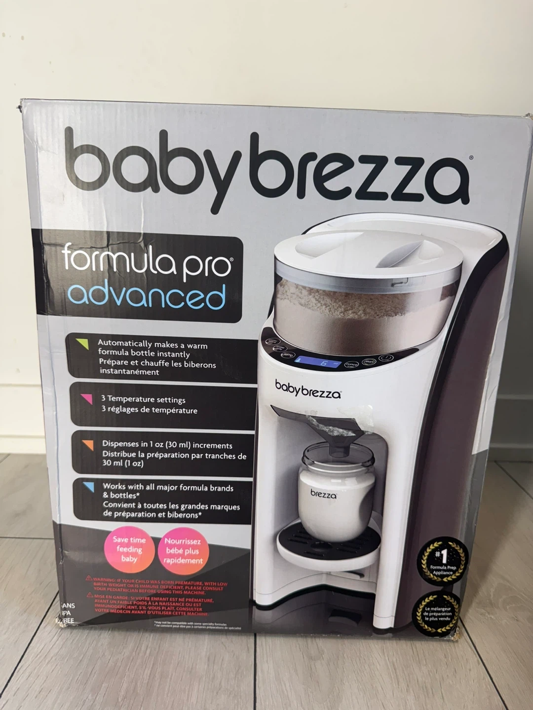 Selling a Baby Brezza Formula Pro Advanced. It automatically makes a warm baby bottle instantly! It dispenses in 1 oz (30 ml) increments and works with all major formula brands and bottles. It has 3 temperature settings. The box is included!