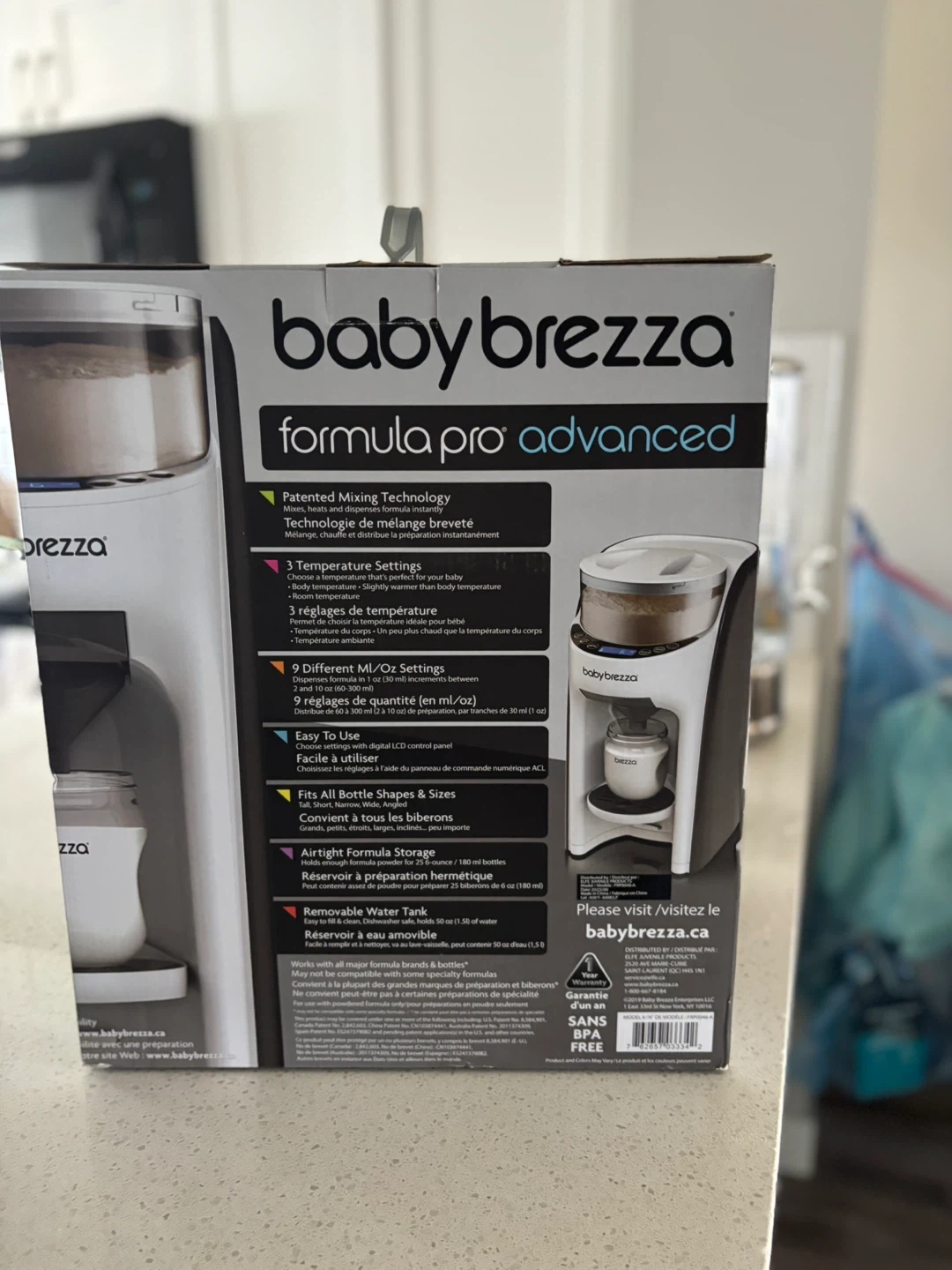 Selling a Baby Brezza Formula Pro Advanced! It features patented mixing technology, ensuring perfectly mixed formula every time. Key features include: - 3 temperature settings - 9 different sizes (in ml/oz) - Works with all major formula brands & bottles - Airtight formula storage - Removable water tank Brand new and never used as I got it for a baby shower and ended up breast feeding