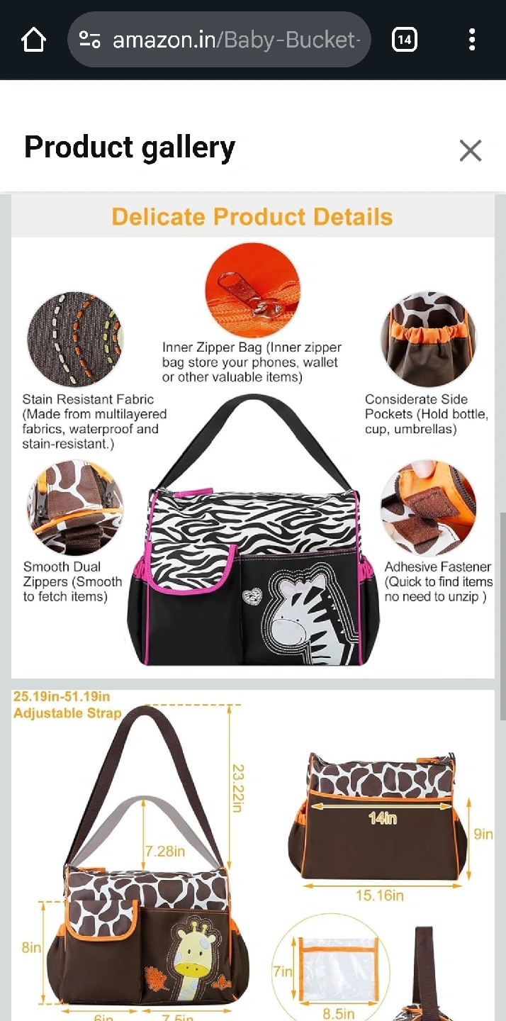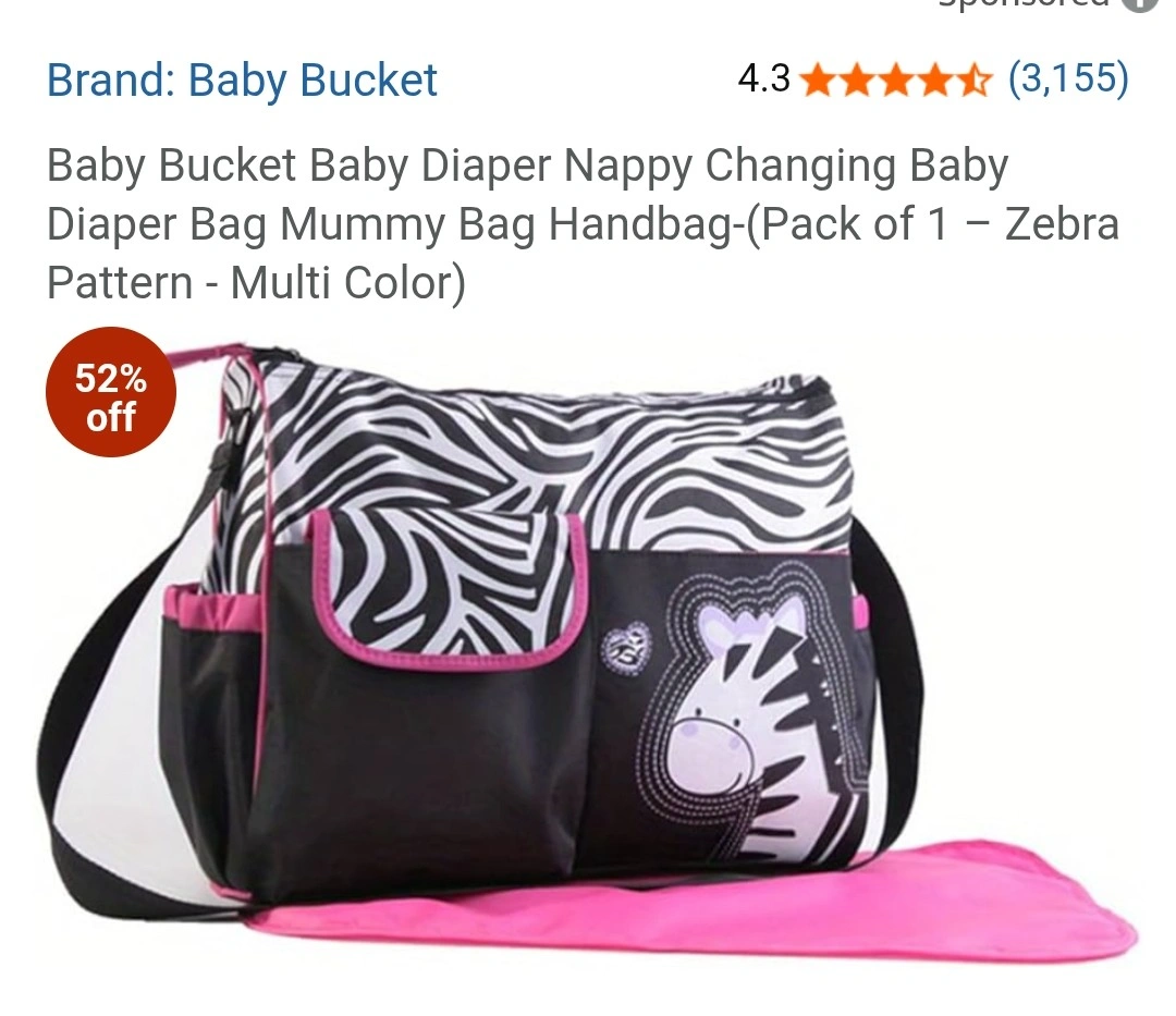 63Selling a Baby Bucket diaper bag with a cute zebra pattern! It's a multi-colour bag, perfect for carrying all your baby essentials. It features stain-resistant fabric and smooth dual zippers, making it both practical and stylish. There are also considerate side pockets for bottles and an adjustable strap for comfort