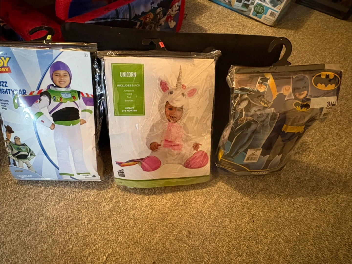 20Selling three adorable baby costumes! There's a Buzz Lightyear costume, a cute Unicorn costume that includes a jumpsuit, hood, tail, and booties, and a Batman costume. The Unicorn costume is infant size, 0-6 months. Perfect for dress-up or Halloween! Asking $20 ea or best offer FCFS