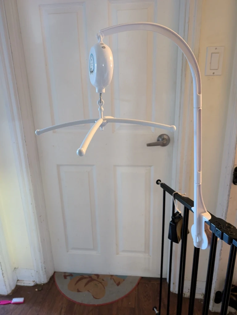60HLEEDUO 28 inches crib mobile arm with music box spinner, volume control crib mobile motor 3 modes(music only, music & rotating, rotating only), mobile arm for crib, mobile holder for crib