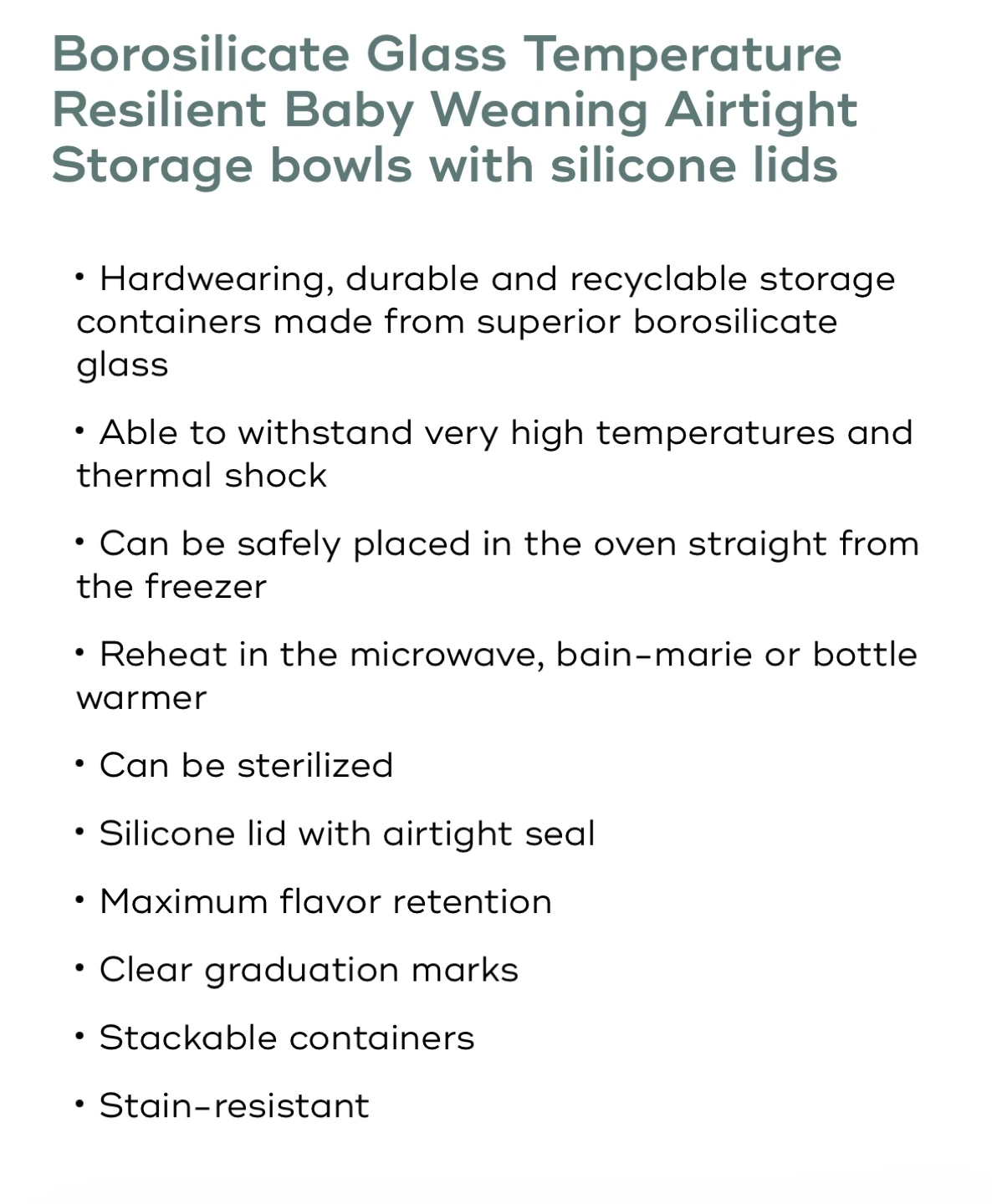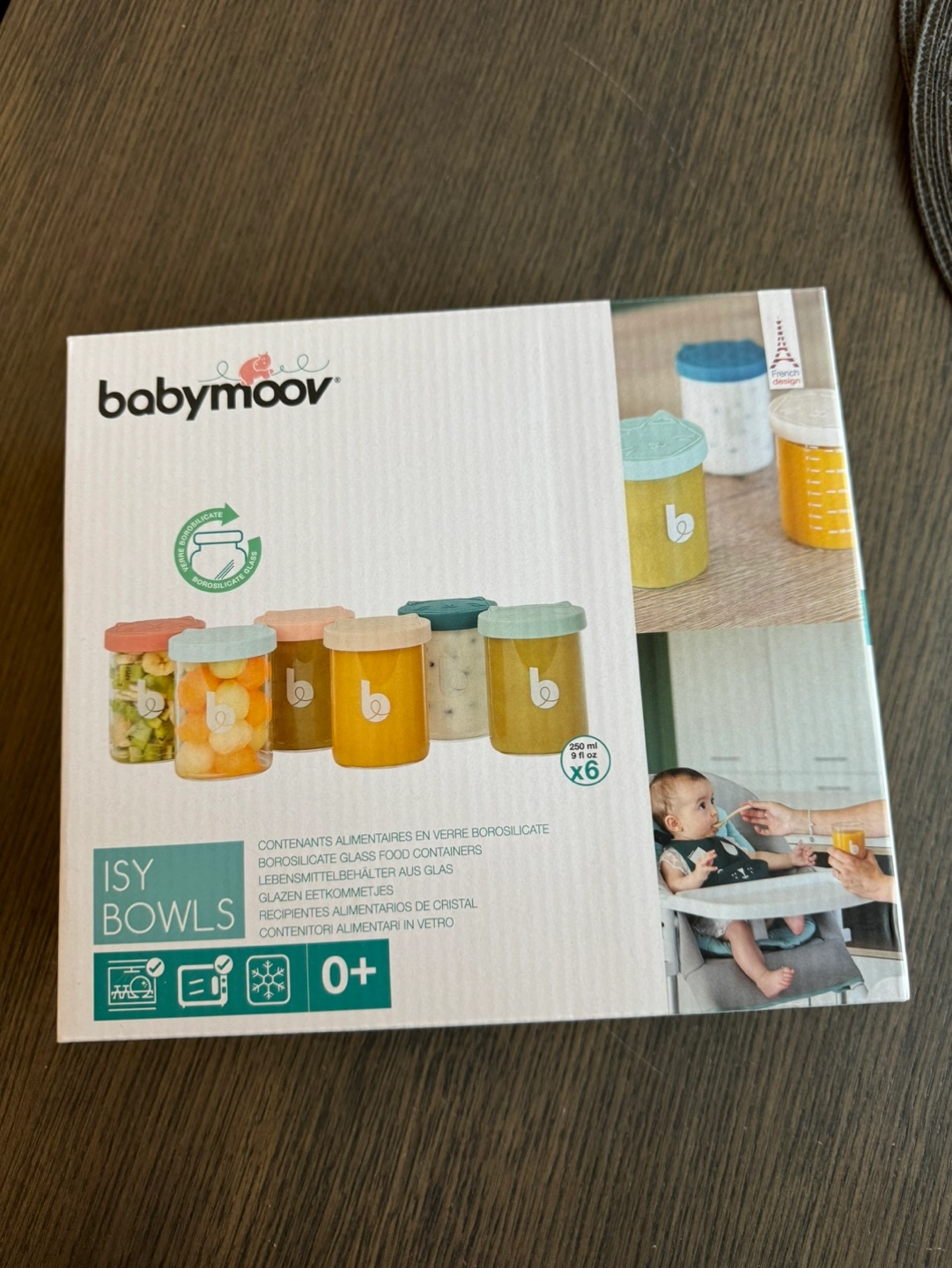 49Babymoov 6x 250ml glass containers for storing home made food for baby/toddlers; Like new (barely used), no stains/chips, in original box