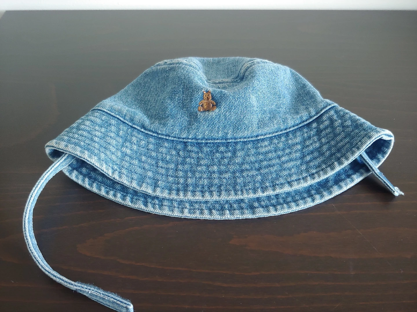 This adorable denim bucket hat from Baby Gap is in great condition! It's the perfect accessory for your little one, sized for 0-6 months. The hat features a cute little bear detail and is made from 100% cotton shell and 80% polyester, 20% cotton lining. Like new!