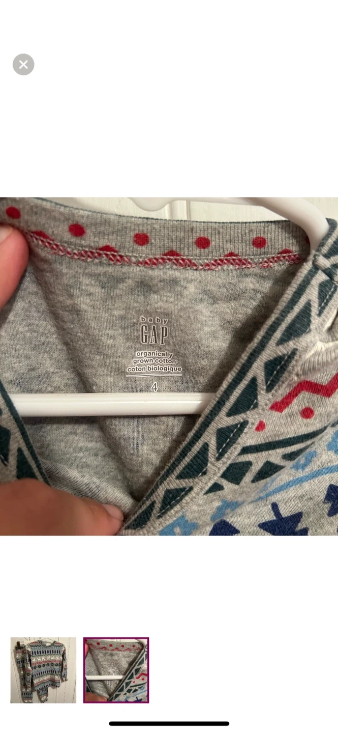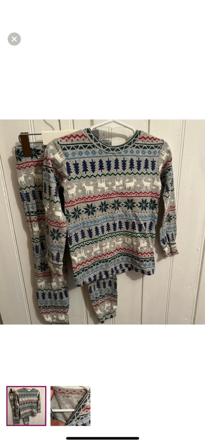 12Gap brand. 2pc sleep set of long sleeve shirt and pants. Reindeer Aztec like print. Size toddler 4. Brand new condition $8 Pickup Kincardine area or Peterborough but I can arrange delivery in port Elgin, walkerton-Durham, wingham-listowel-kw/cambridge/guelph, goderich-bayfield, & Arthur-Orangeville-Newmarket-Lindsay AREAS.
