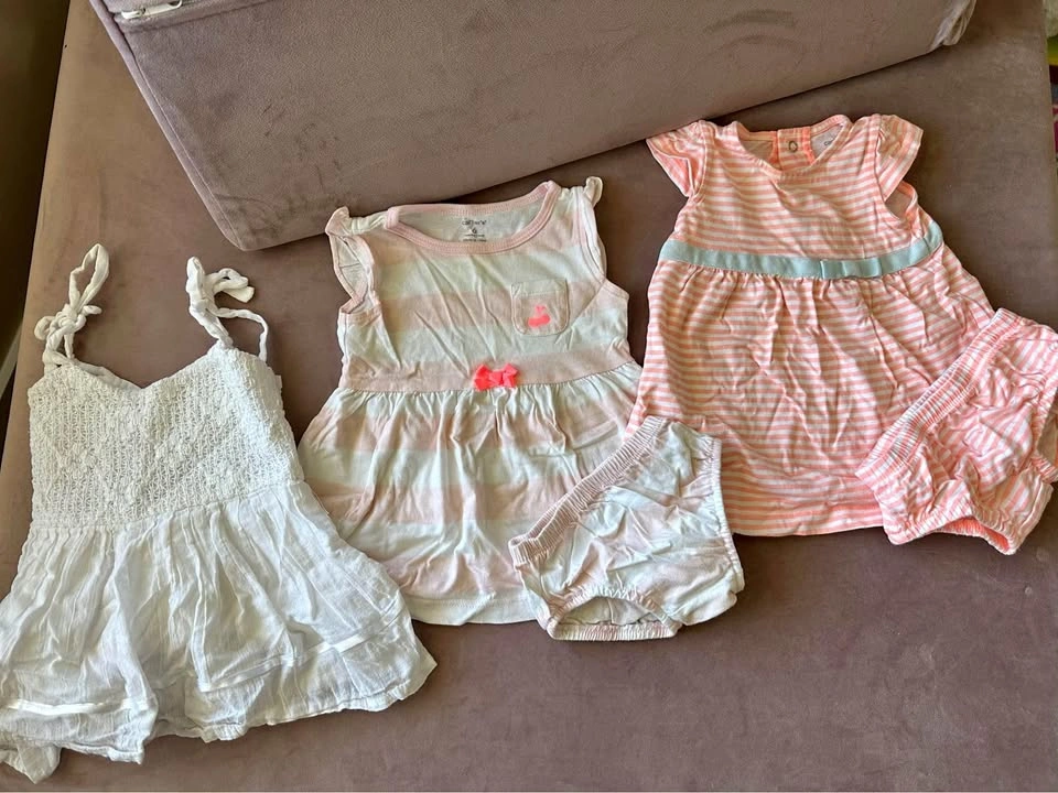 3 dresses for 6 month old baby girl. Comes with diaper covers. Great condition, just wrinkly from storage. $10 for all three Pu Willoughby in Langley