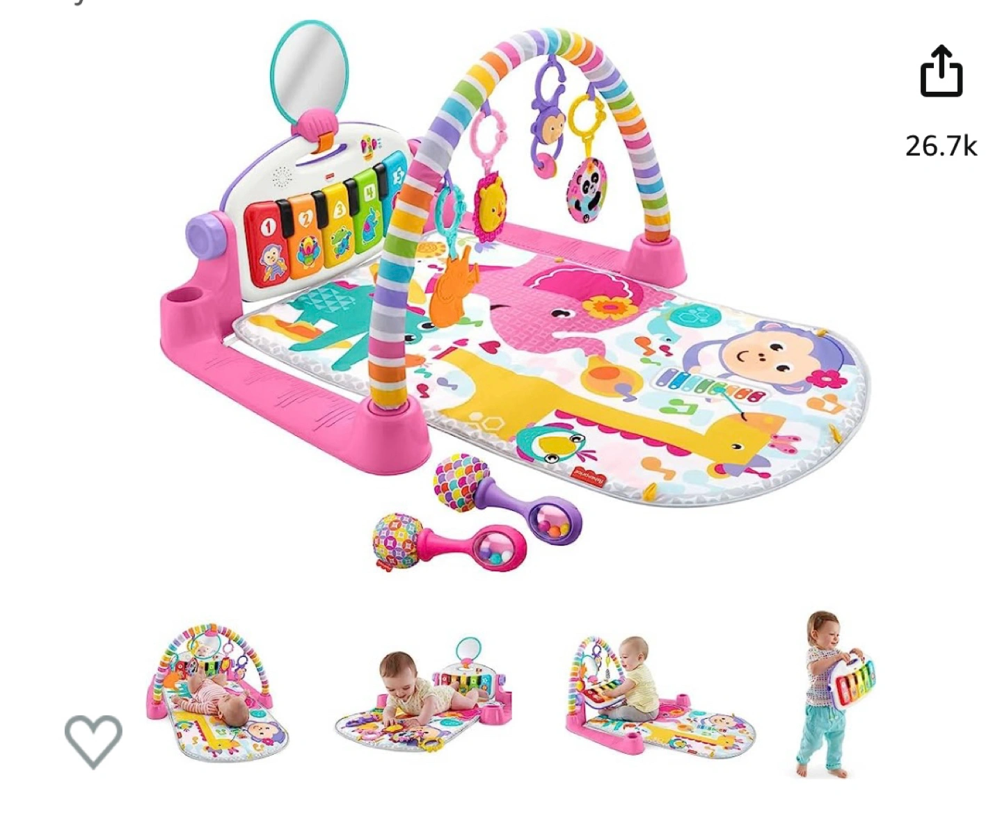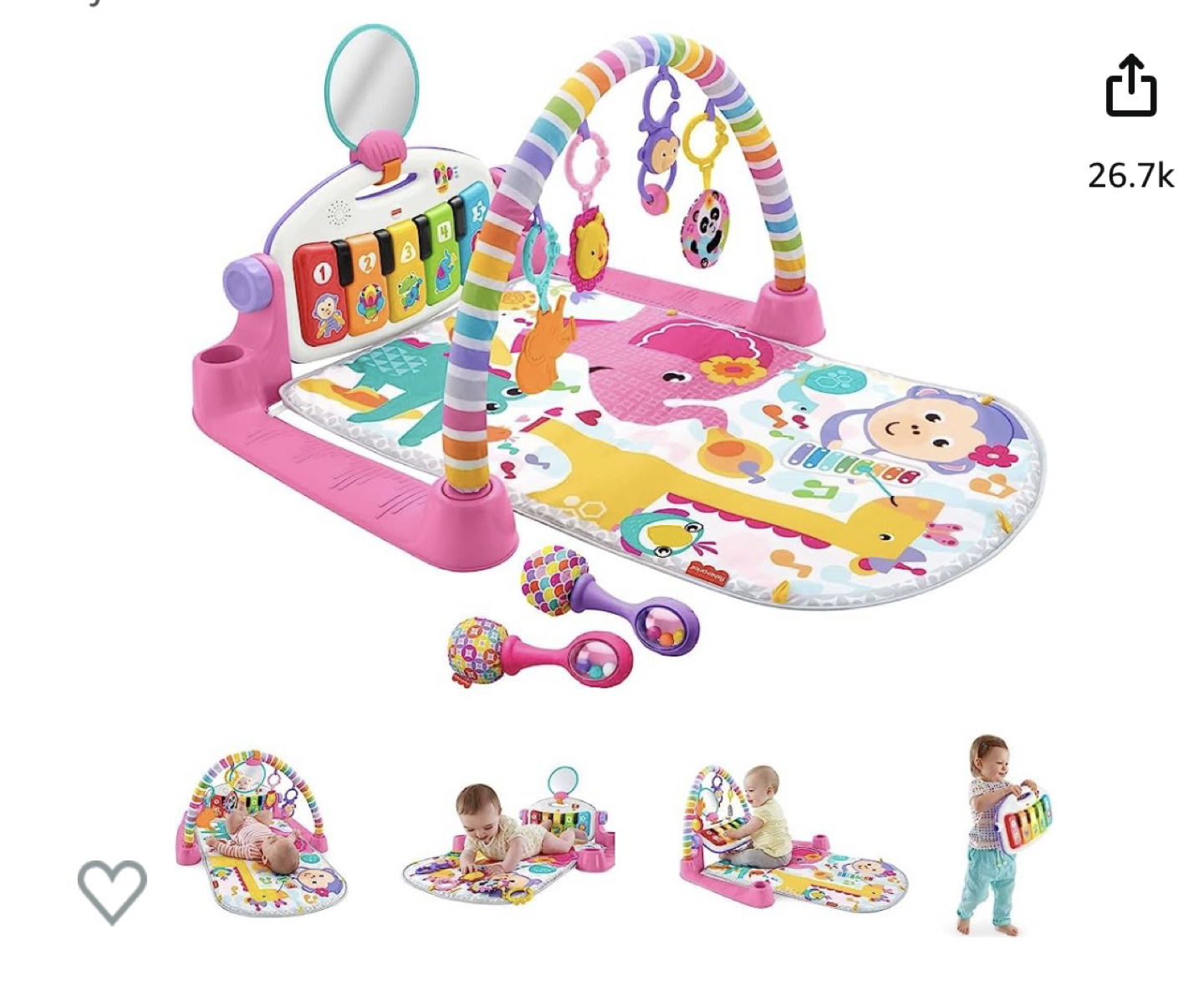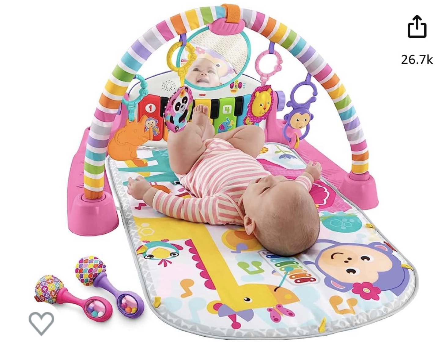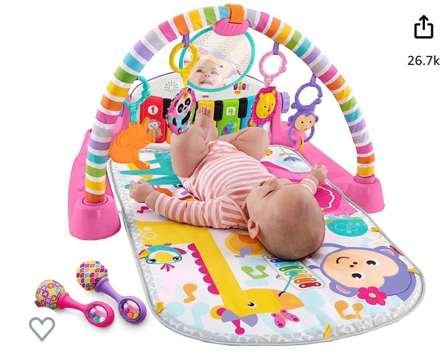 5Fisher-Price Baby Gym & Rattle Gift Set, Deluxe Kick & Play Piano Gym with Lights Music & Smart Stages Learning Plus Toy Maracas