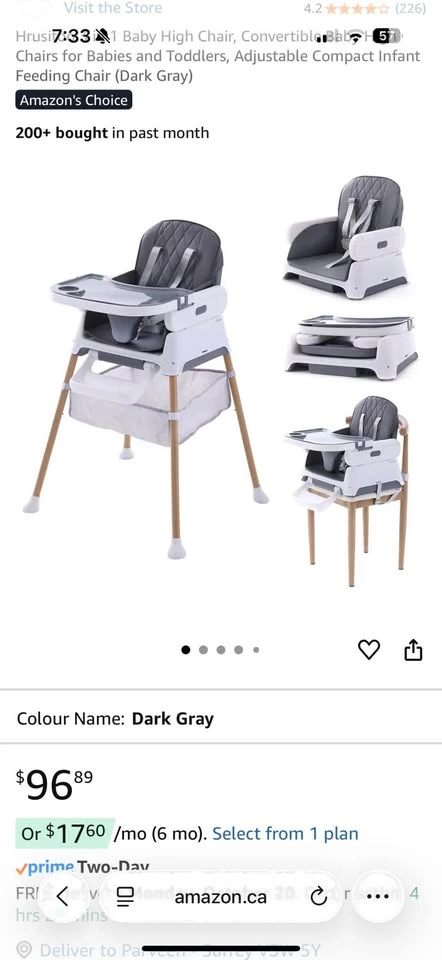 10Baby high chair in excellent condition. Like new, used 2-3 times only. Moving sale. Retails for almost $100. Pick up ASAP.