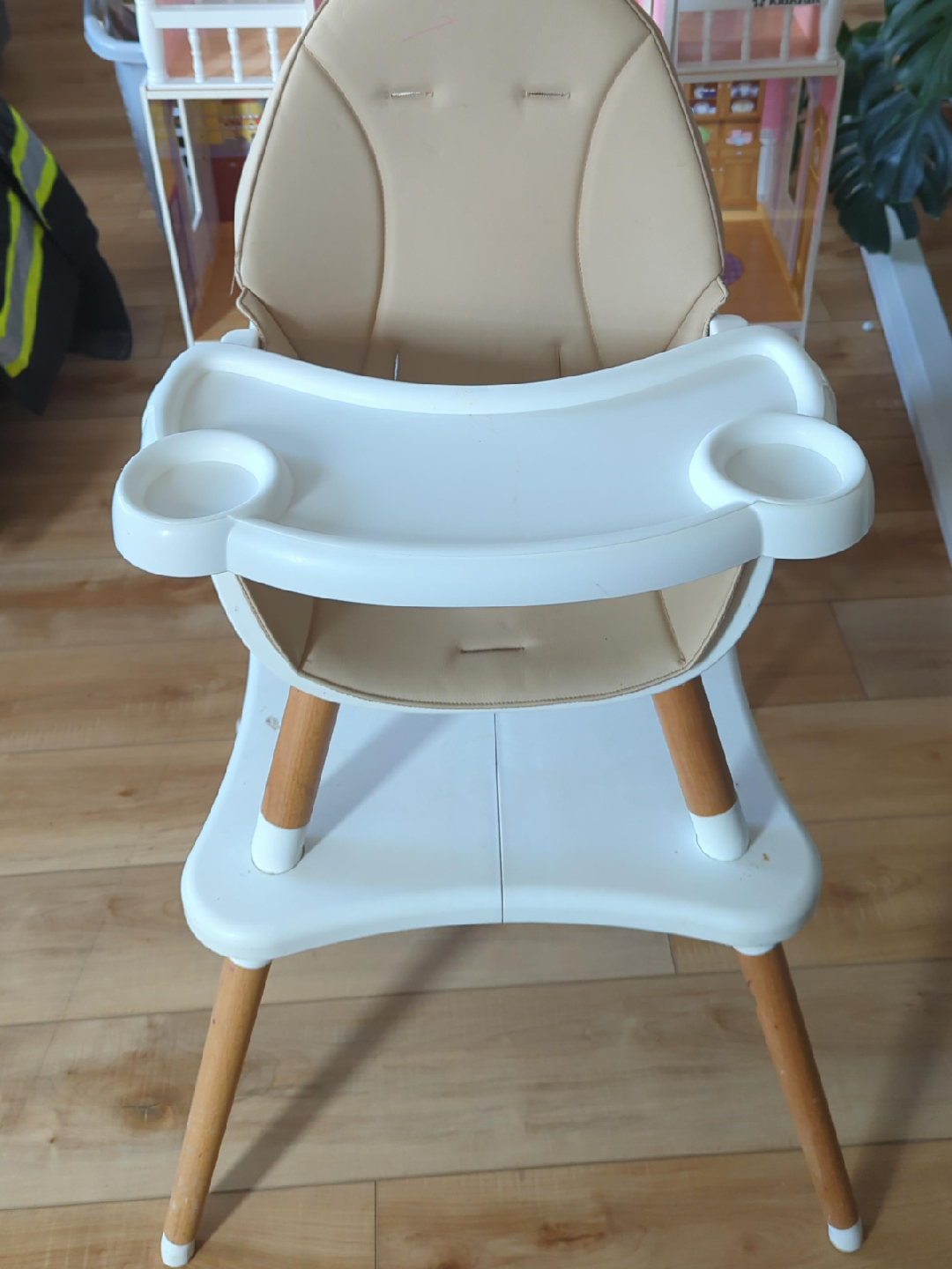 65Selling a baby high chair in white and beige! It's in good condition and ready for a new home. Perfect for meal times with your little one