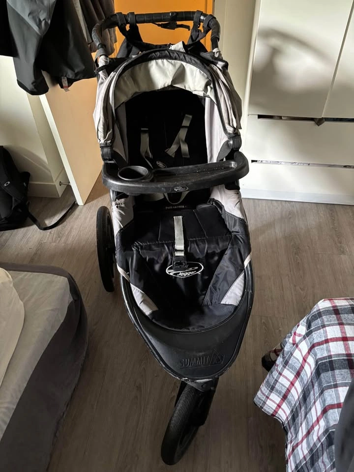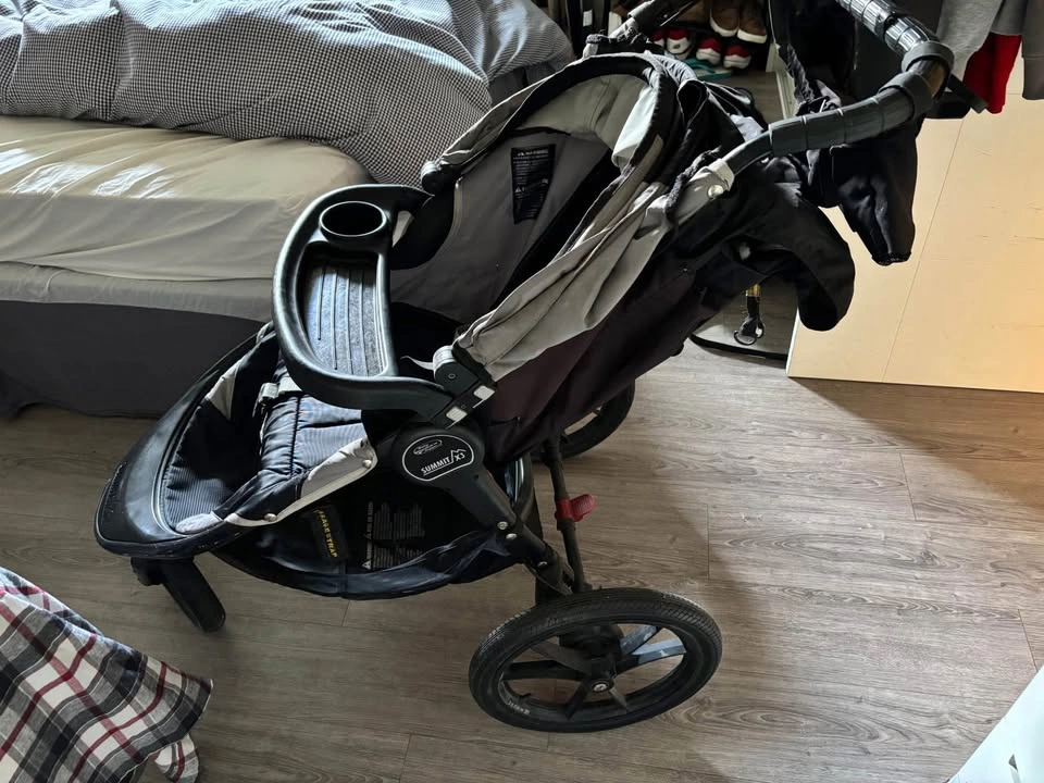 Good condition. My wife used for a few years, trained/raced a few 10k’s. Fast and safe. Some wear and tear and a bit dirty but works perfectly. She loved this stroller. Really useful even around some snow. Pick up in Beltline.