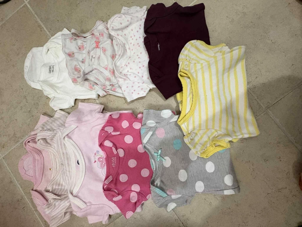 Selling a bundle of baby onesies in various colours and patterns. Brands include Carter's and Child of Mine. These are perfect for layering or wearing on their own during warmer weather. Sizes NB-3m