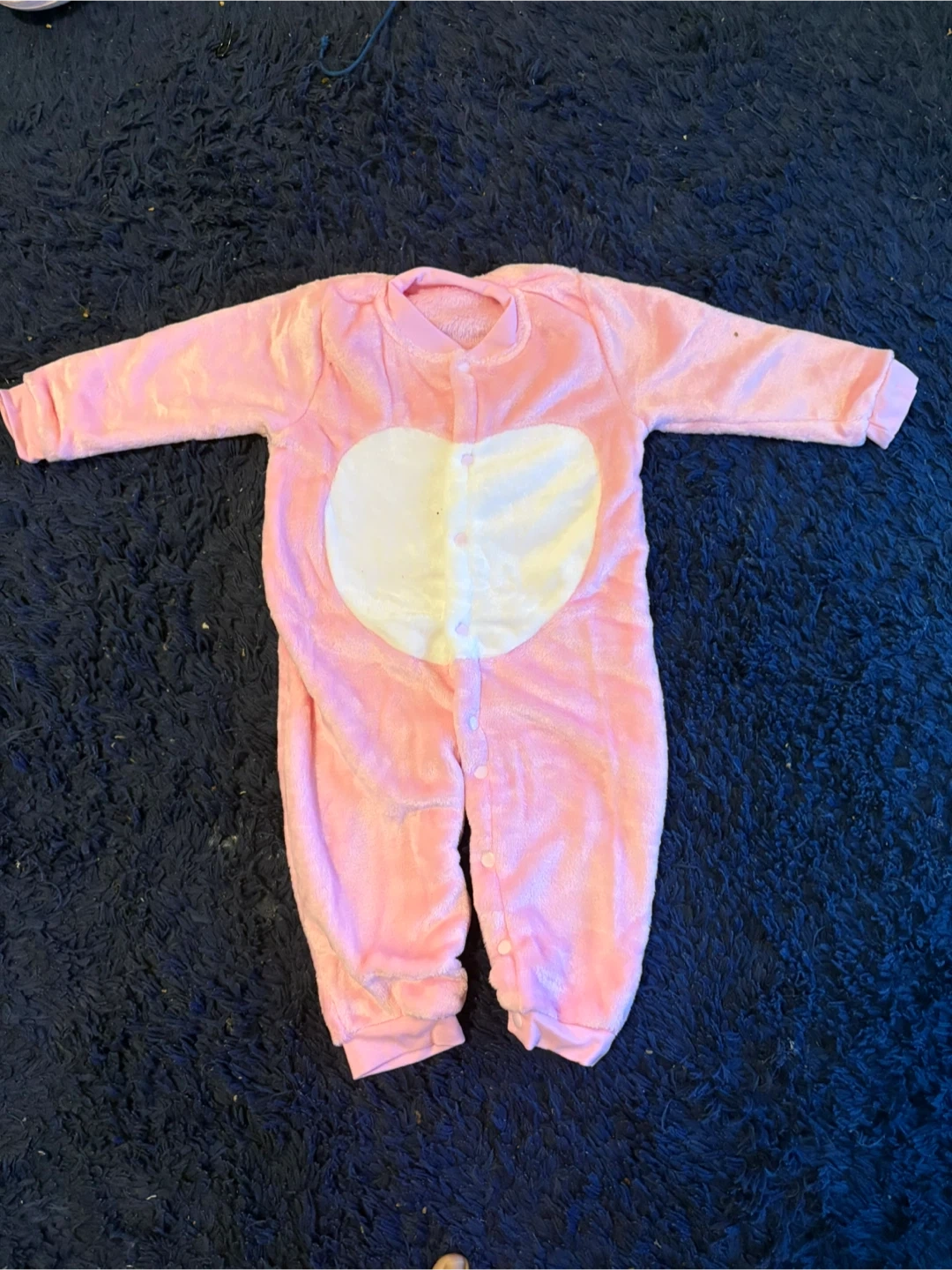 114Selling two cute baby onesies! One is pink with a white heart, and the other is white with pink and red star patterns. Both are in great condition and perfect for keeping your little one warm and cozy