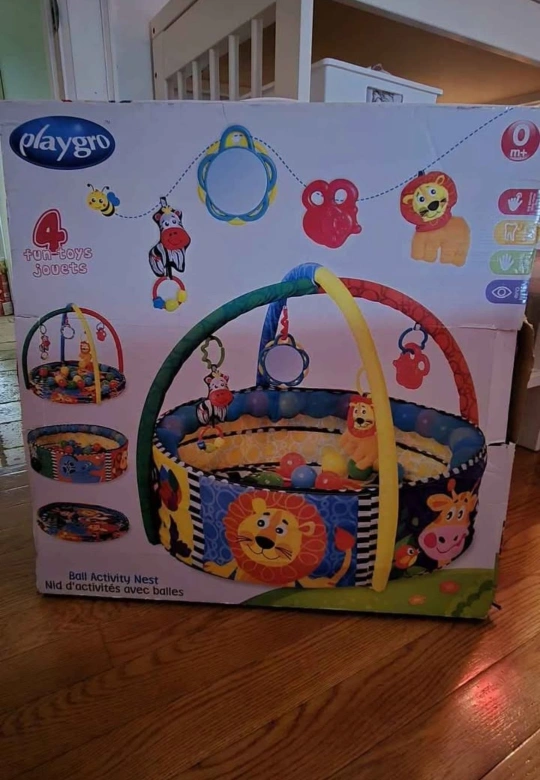14This Playgro Ball Activity Nest is a fun and engaging play gym for your little one! It comes with 4 fun toys to keep them entertained. The nest is designed for babies 0 months and up. Box included!