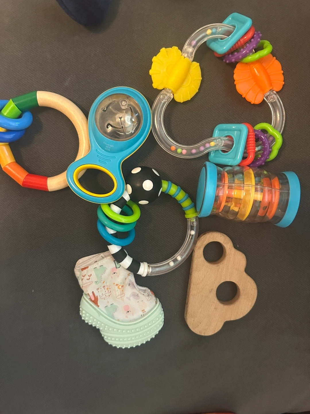Selling a cute set of baby rattles and teethers! This set includes a variety of colourful and textured toys perfect for soothing sore gums and stimulating your little one's senses. All in great condition and ready for a new home!