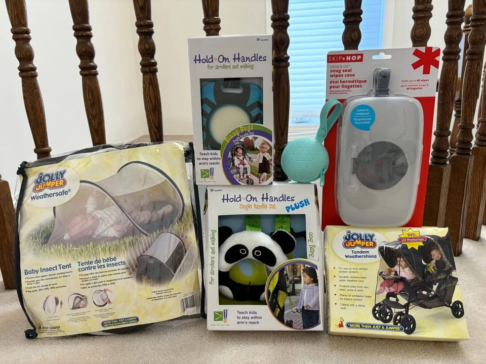 Never used products for sale - everything needs to go by September 14 Baby shoes (never worn, size in each photo) $20 each or $15 for more than 3 shoes Baby girl swim suit (size in photo) $20 Baby mesh tent $20 Stroller accessories $25 Skip hop baby products - baby wipe case (you can hang it on your stroller, diaper bag, etc.) $25 - silicone pacifier case (open box) $15 If you buy everything, willing to offer $150 Pickup in Alta Vista
