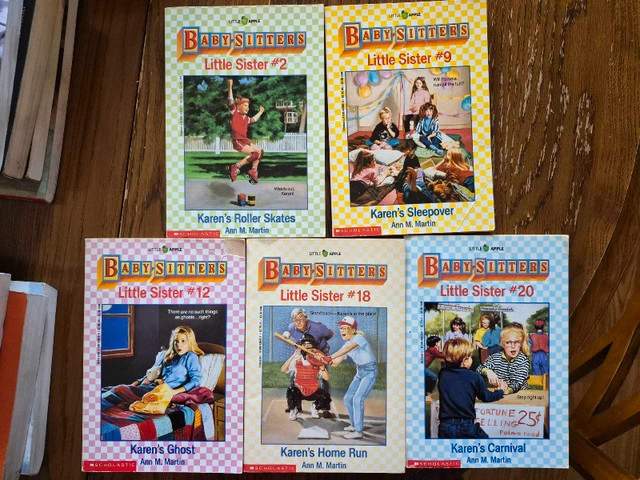 10Dive into the world of Karen Brewer with these used copies of The Baby Sitters Club: Little Sister books. These books are in good, used condition and ready for a new home. Titles include #2 Karen's Roller Skates, #9 Karen's Sleepover, #12 Karen's Ghost, #18 Karen's Home Run, and #20 Karen's Carnival. Perfect for young readers and collectors alike! * Series: The Baby Sitters Club: Little Sister * Titles: #2, #9, #12, #18, #20 * Author: Ann M. Martin * Publisher: Scholastic I estimate the value of each of these books to be in the $3-$5 range based on Kijiji and eBay listings. If the ad is up, the books are available. Don't miss out on adding these fun stories to your collection! $5 for the lot.