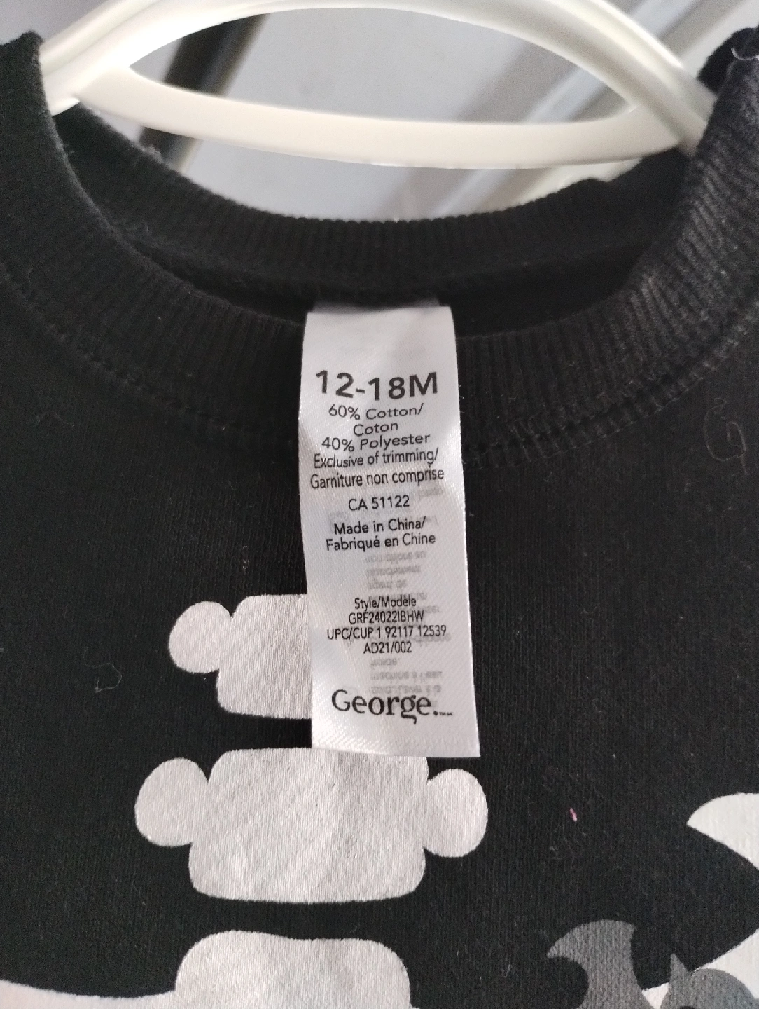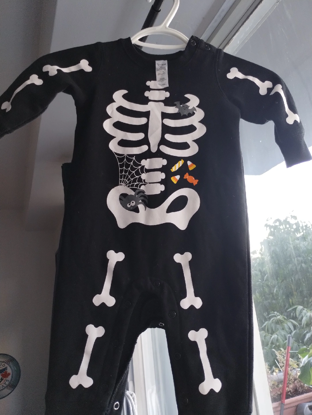 43A cute black onesie with a skeleton design! It's size 12-18 months and made from 60% cotton and 40% polyester. Perfect for Halloween or just for fun!