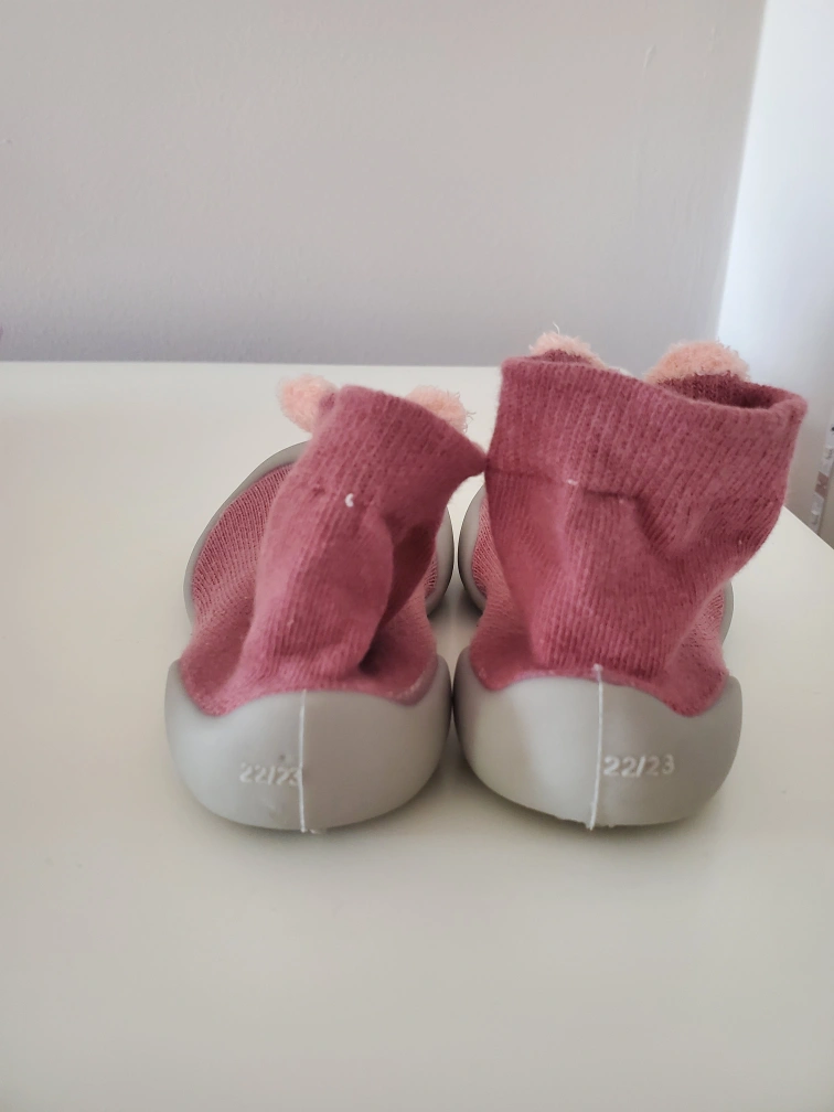 43Tiny Explorings baby socks shoes in bunny pink design. Machine washable. Size 22/23 for 18-24 months. Brand new. Did not end up using them.