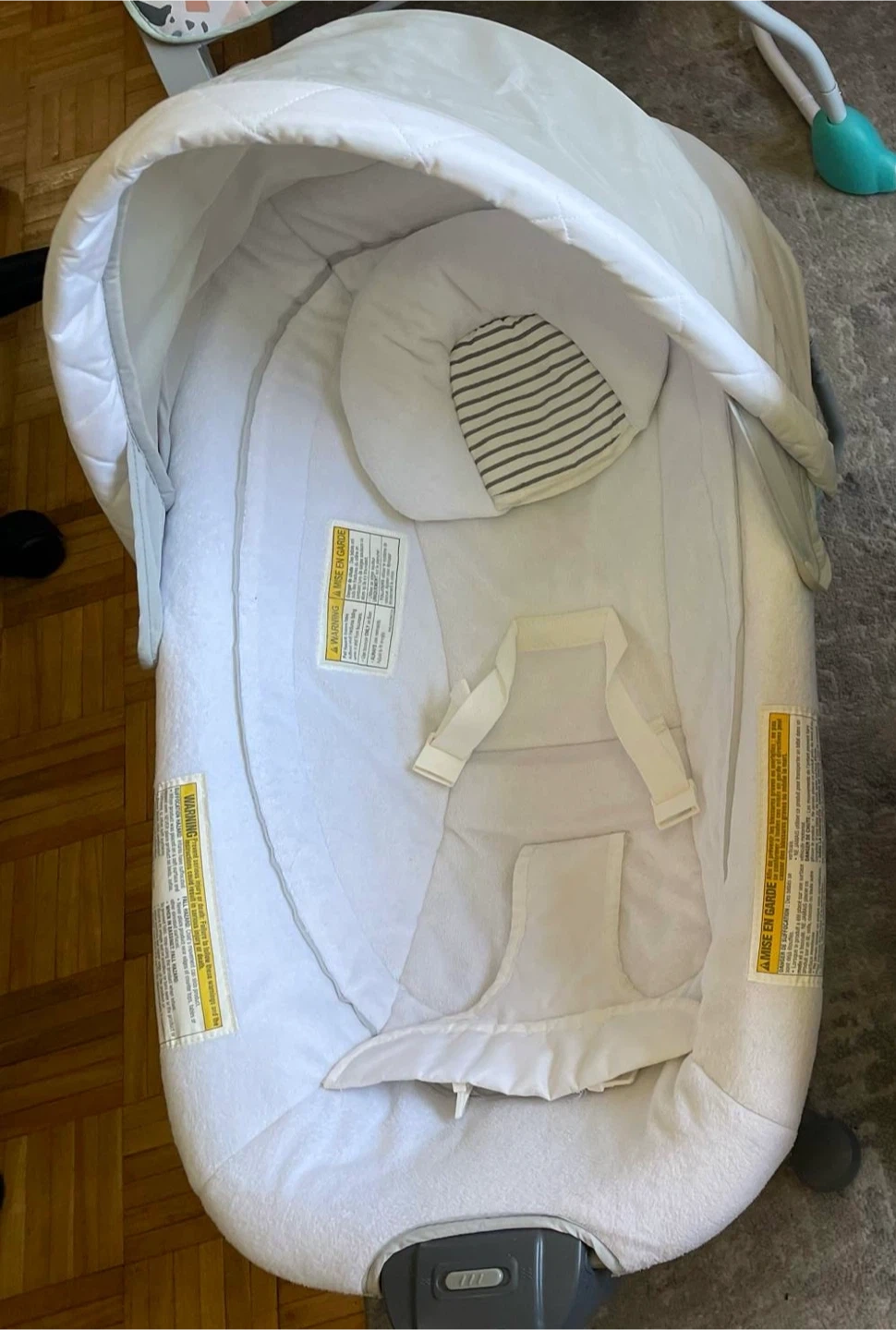 60Selling a gently used baby soother with a canopy. It's in great condition and ready for a new home. The canopy provides shade and a cozy environment for your little one. Perfect for naps or just relaxing!