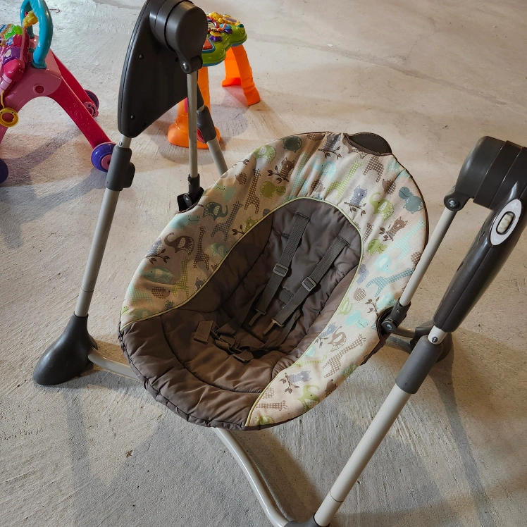 20Infant swing and rocker. Multiple speed settings. Includes toy bar. Great for soothing babies. Used but in good condition. Suitable for newborns and infants.