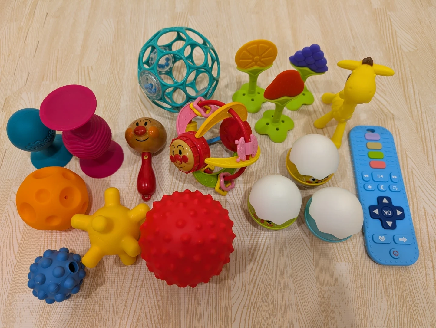 71Baby lot in EUC. Consists of teething toys, Fat Brain Toys pipSquigz, Hape wobbling eggs, Infantino texture balls, OBall, and Anpanman rattle and activity ball. All in like new condition other than some discoloration on Anpanman's face! Infantino balls have never been used in water :) Pick up at Dufferin and Rutherford.