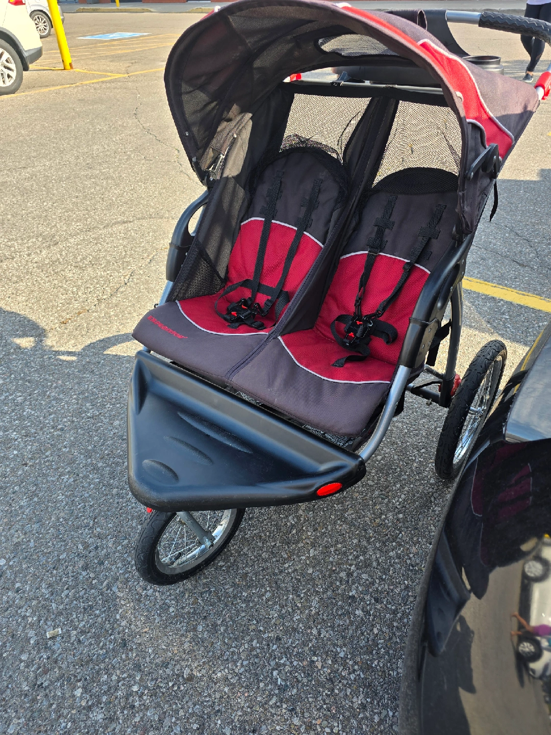 Selling a Baby Trend double jogging stroller in great condition! It's perfect for taking two little ones out for a walk or jog. It's easy to maneuver and has plenty of storage space for all your essentials. Originally bought for $299