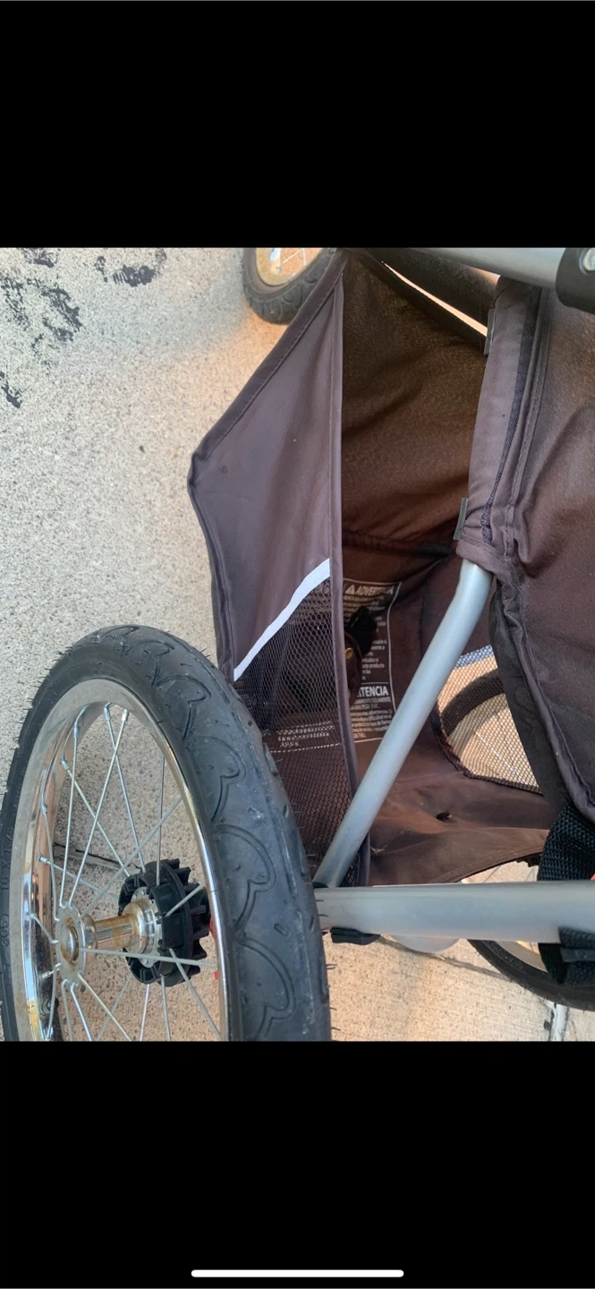 Baby Trend Expedition Jogger Stroller The Baby Trend Expedition Jogger Travel System, designed with style, safety features and ease-of-use functions, guarantees a smooth ride for you and your little one. The all tires allow for no maintenance and a never ending smooth ride. Made with high-quality fabrics and premium padding, the Expedition is an all-terrain jogger that makes travel hassle-free due to its lightweight frame and easy trigger fold. Equipped with an adjustable canopy and peek-a-boo window, this stroller also boasts an extra-large storage basket for essential travel items, a deluxe parent console with two cup holders and covered storage, and a swing-away child's tray for drinks and snacks. Additional highlights include an extra-wide rubber handle, a multiple position reclining seat with an adjustable 5-point safety harness and tether strap, and dual foot rest reflectors for low light visibility. High-impact wheels with all-terrain bicycle tires. integrated side grip handle for ergonomic carrying Take your baby on a nice relaxing leisurely walk or go running and jogging and get some exercise while you walk your baby, 2 in 1! All with this stroller Cheap - message me Can be picked up or delivered