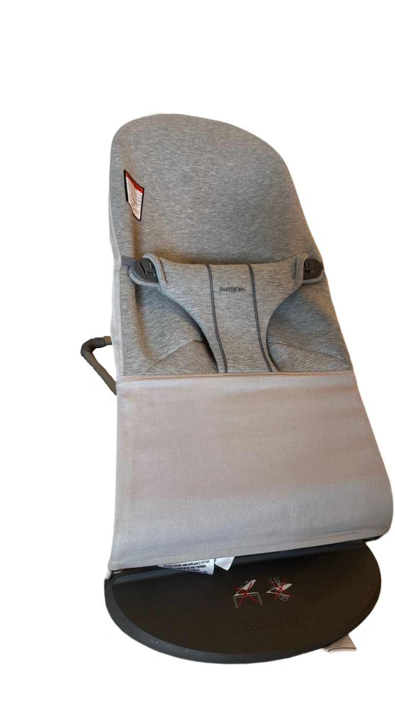 55Gray and beige baby bouncer. Made with soft fabric. Perfect for any new parent to soothe their baby, bringing a sense of calm to the room.