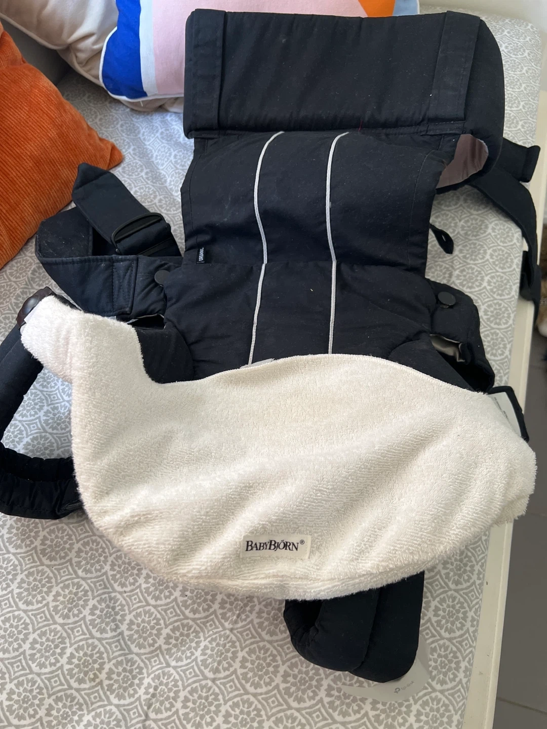Selling a BabyBjorn baby carrier in black. It's in great condition and ready for a new little one. Perfect for keeping your baby close and secure while you're on the go!