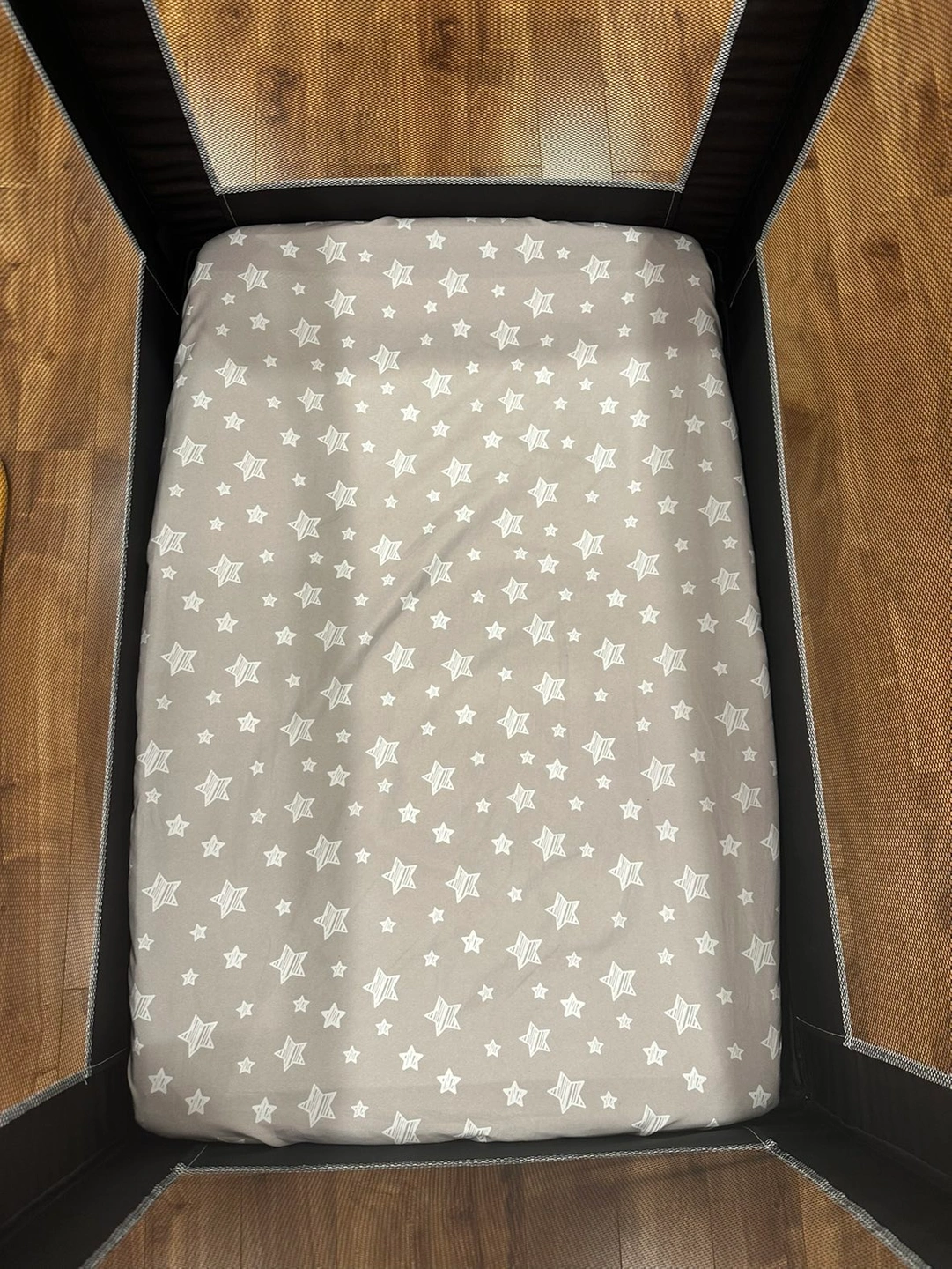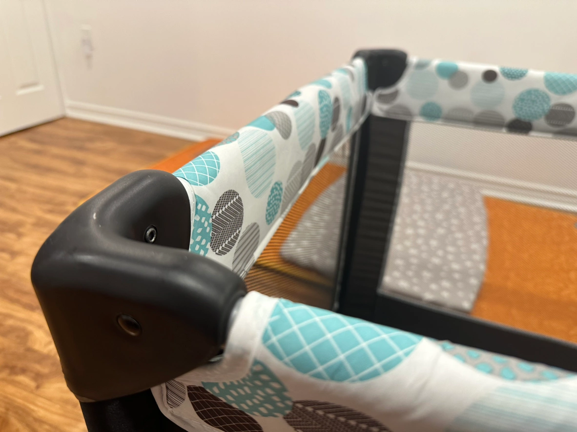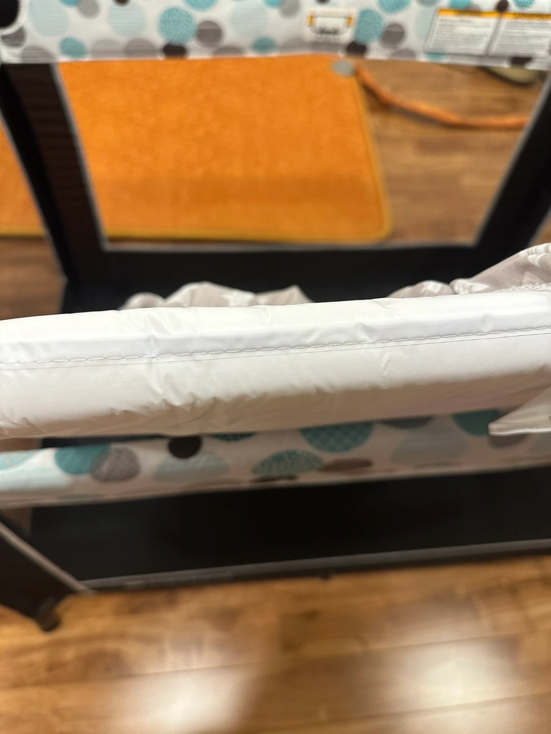 Perfect playpen for traveling or to leave it at grandmothers house during the visit. Even for camping :) I used it for my babies grandmother visit, it was only used few times as we didn’t visit much but during the visit baby took a nap inside and it was perfect. The condition of the playpen is like new with not a single scratch. It is from pet & smoke free house. I am selling with single waterproof mattress but the playpen itself has a hard floor inside the playpen.