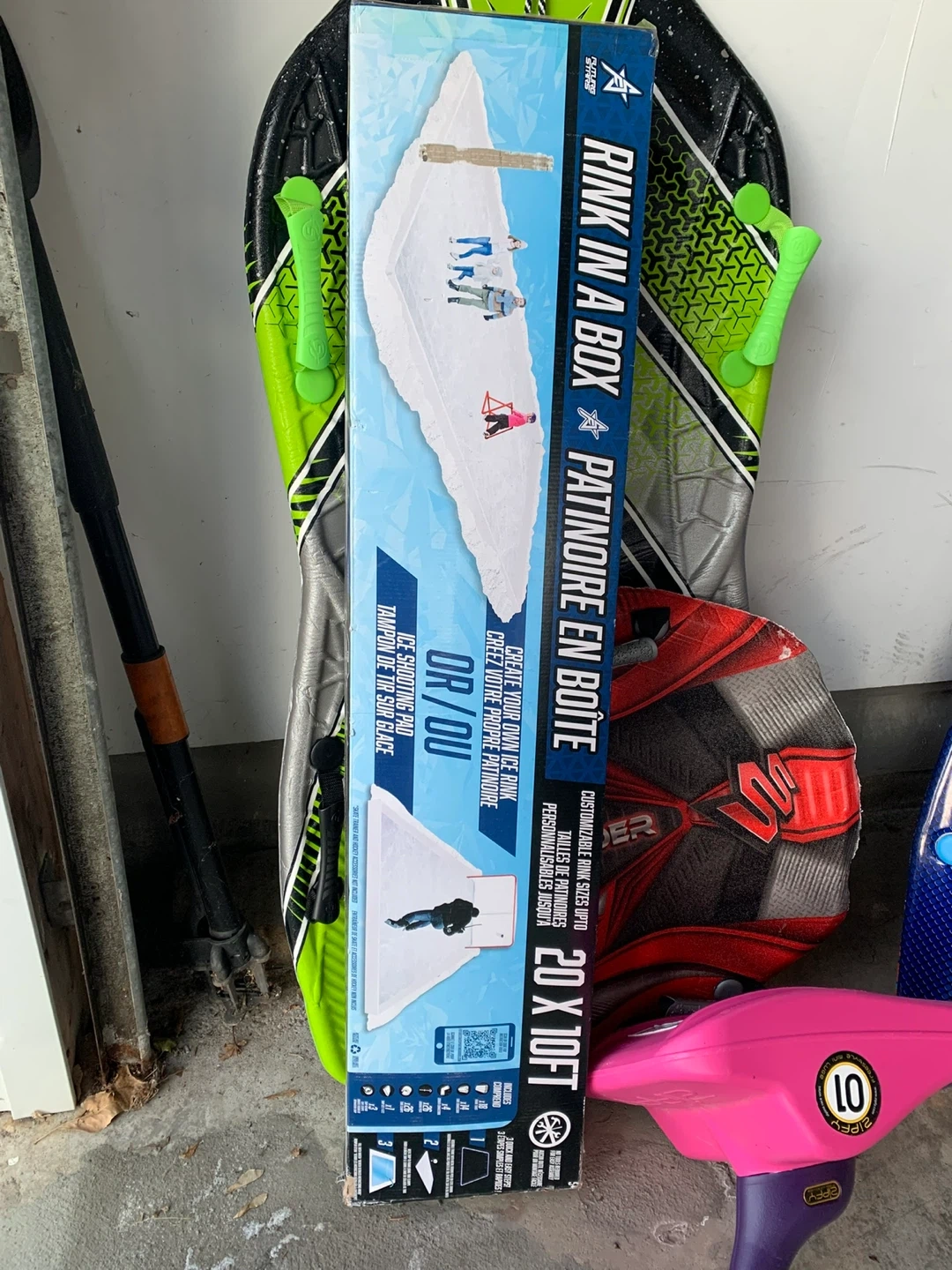 23Backyard Ice Rink Kit 20X10 ft New in box https://www.walmart.ca/en/ip/future-stars-backyard-ice-rink-kit-frame-tarp-and-in-ground-pegs-customize-size-up-to-20-x-10-72-in/6000201827636 Pm if interested Pick up Richmond Hill or Vaughan
