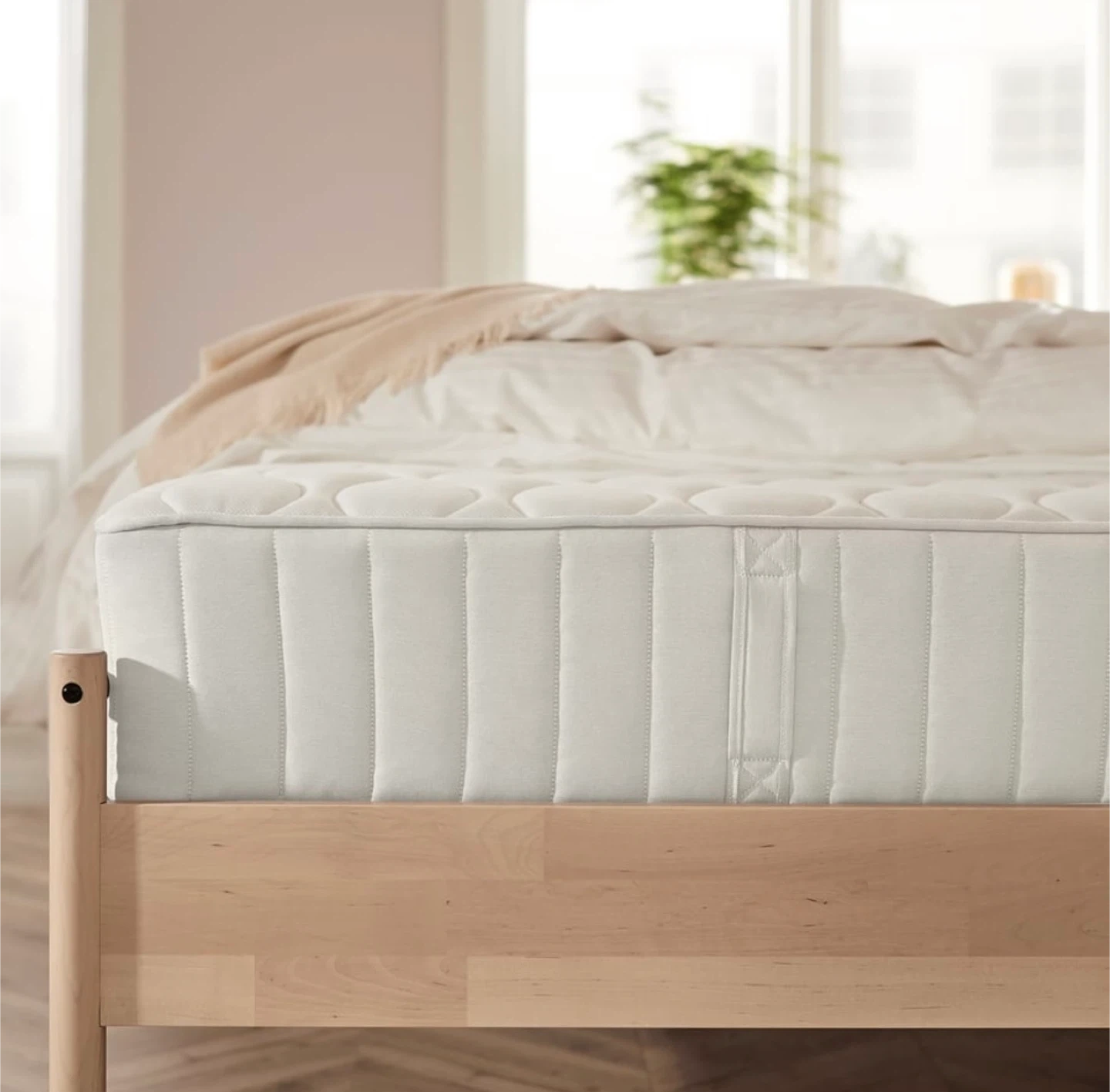 This IKEA mattress features pocket sprung technology for support and comfort. It has a quilted white fabric cover. A good choice for a restful sleep!