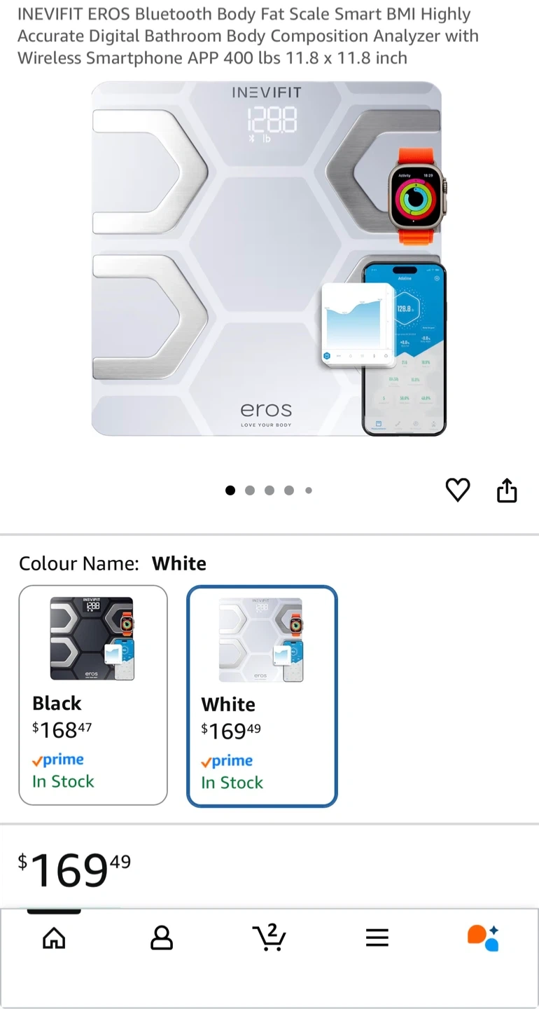 Selling an Inevifit Eros body fat scale in new condition! It measures complete body composition, including body weight, BMI, body fat, and more. It's highly accurate and features smart tracking, with unlimited users. Comes with the box!