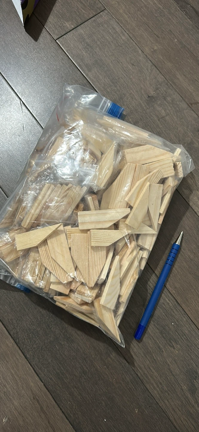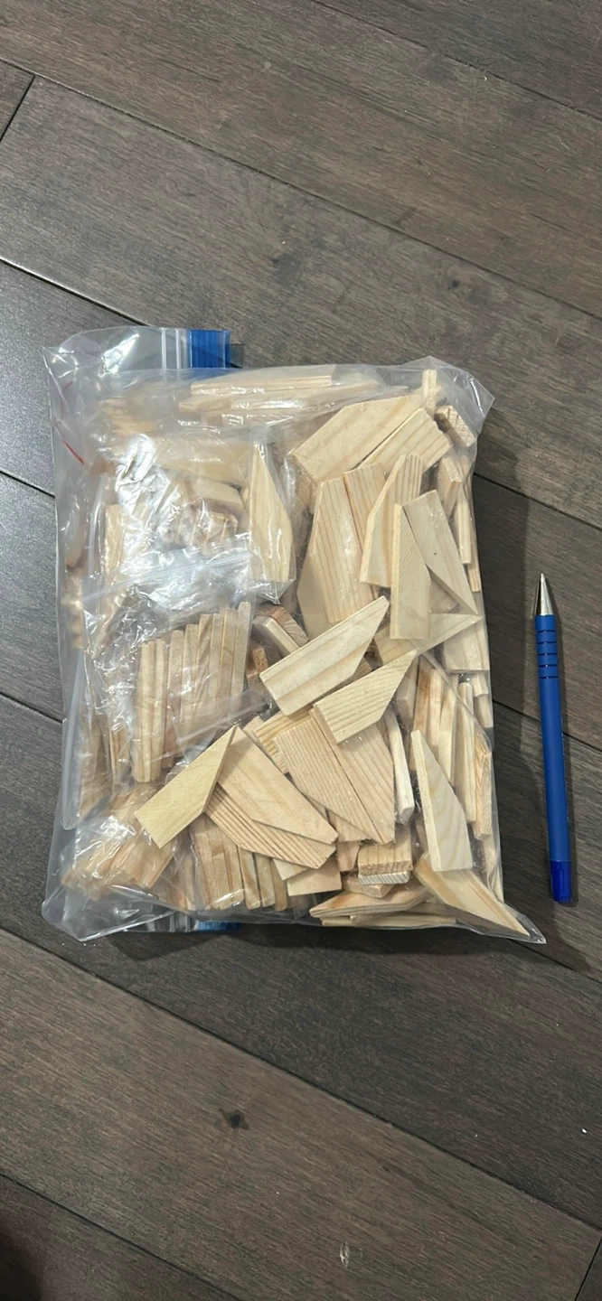 Selling a bag full of wooden craft pieces! These are great for all sorts of projects, from building miniatures to adding texture to art pieces. They come in various shapes and sizes, perfect for letting your creativity flow. Get crafty!