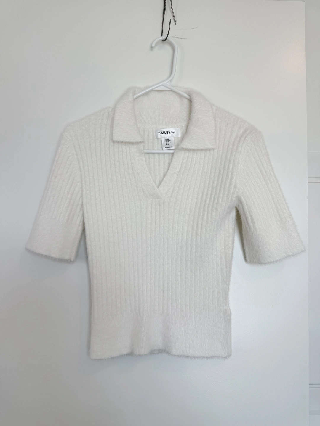 53Elevate your wardrobe with this effortlessly stylish ribbed knit top from Bailey/44 🤍 Crafted from a soft, cozy fabric blend, this cute short-sleeve sweater features a flattering fitted silhouette, a deep V-neckline, and a smart collar for a touch of sophistication! No defects, condition is perfect 10/10 🔥and it was never worn❗️ High quality fabric and it stretches well (see end of the video) Original retail price: ~$150 CAD, I’m selling for 70$! But the price is negotiable :) Size XS (also good for S, maybe even M) Will be happy to provide all measurements upon request📏 Material: 67% nylon 21% rayon/viscose 12% polyester You can try it on before buying :) We can meet anywhere (GTA and Toronto), and shipping is also available📦 Msg me for more details. Check out my other listings♥️ thanks.
