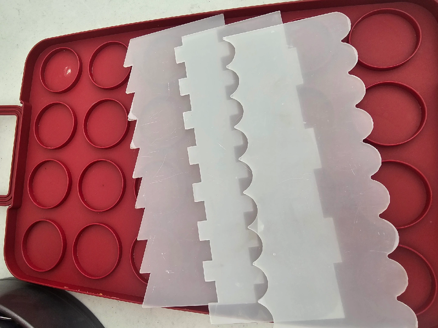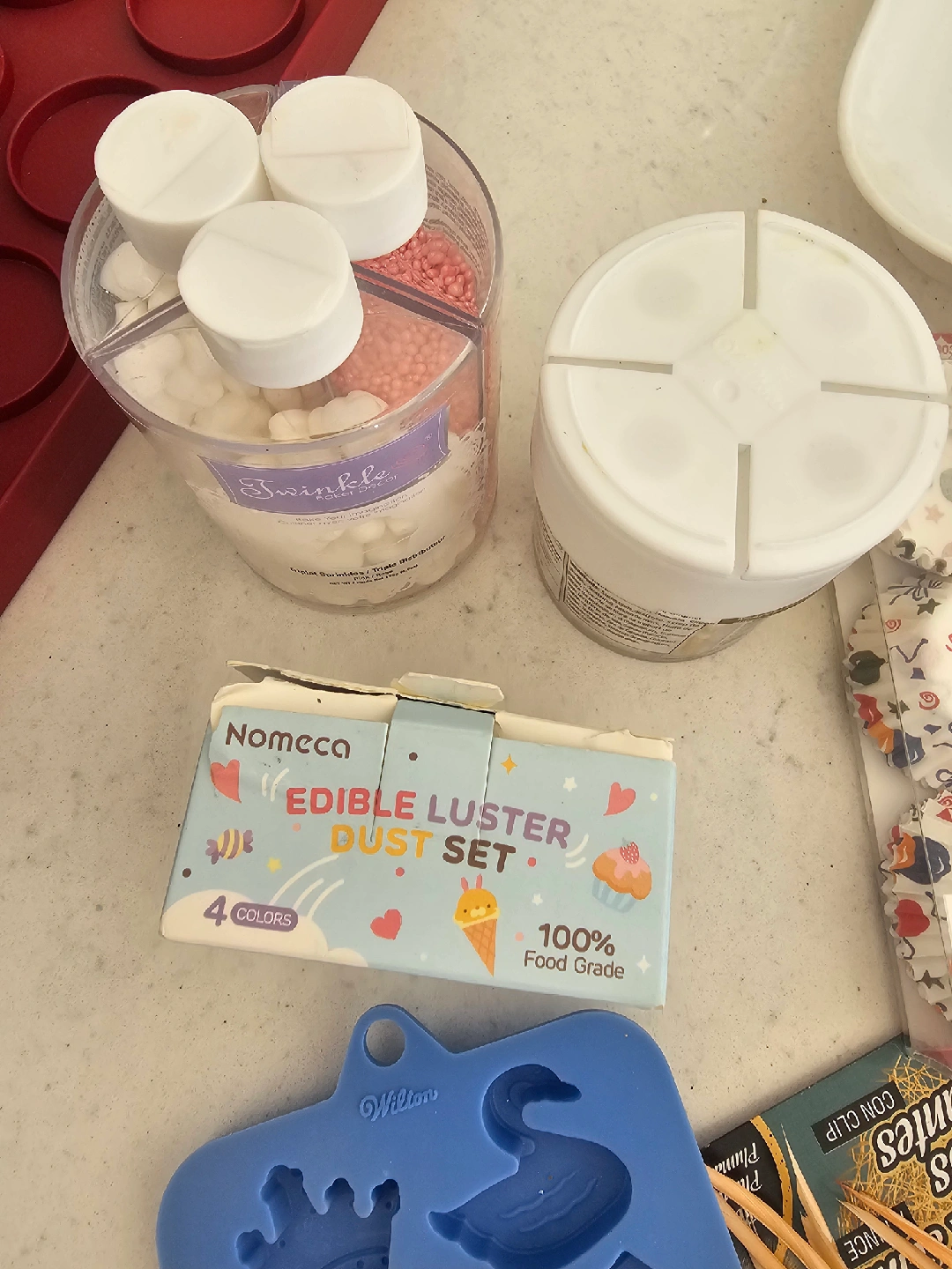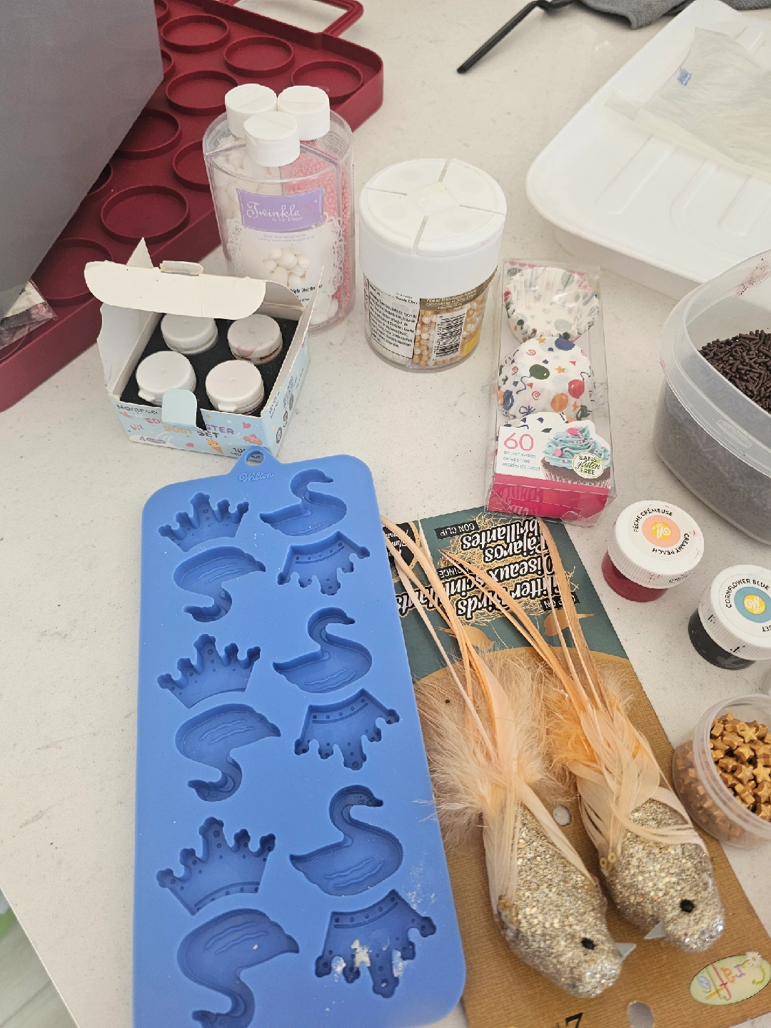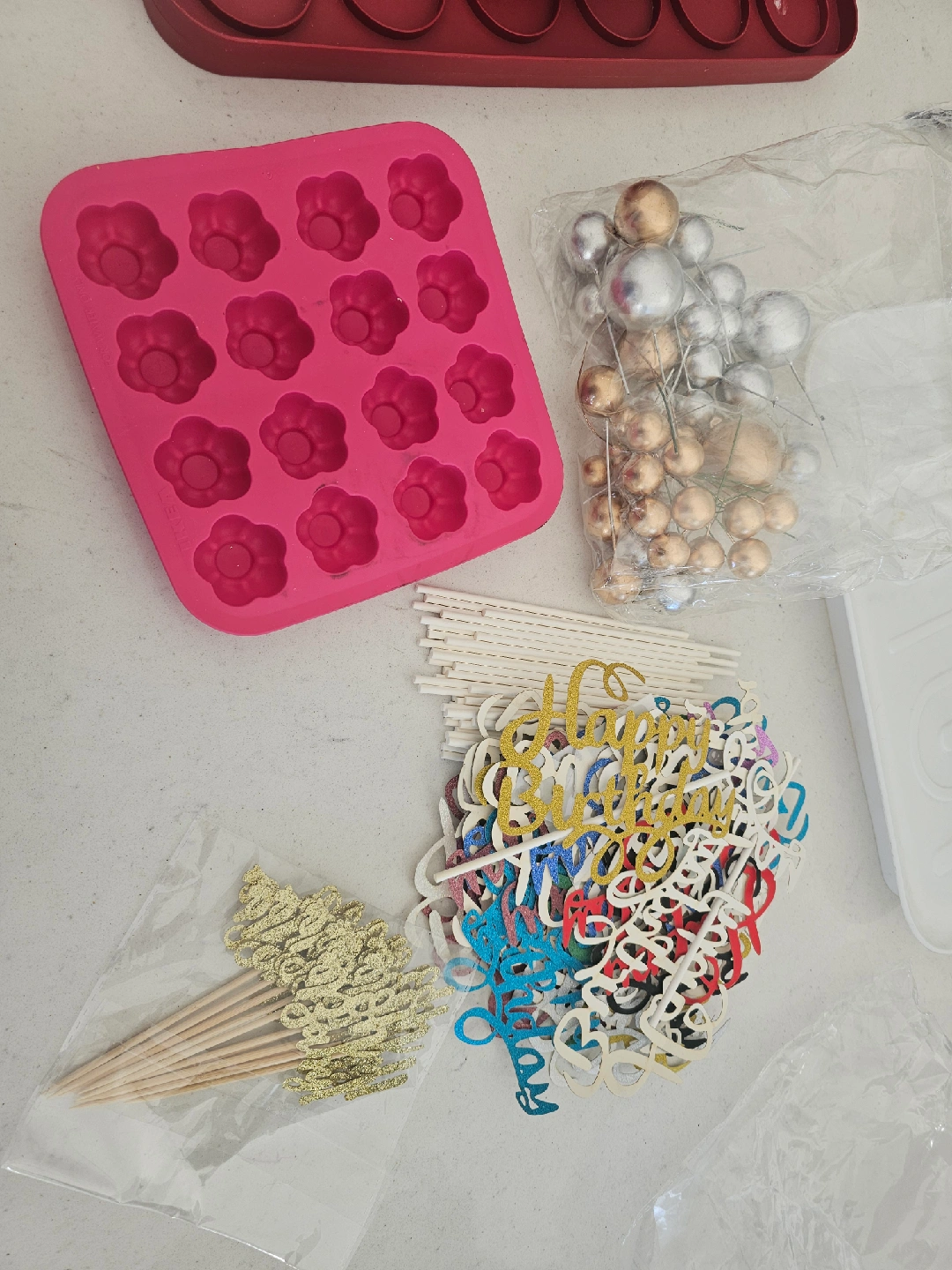barely used cake baking and decoration tools and raw material. 1. 5 of 4 in cake pan 2. 2 of 9 in 3. 2 of 8 in 4. 1 of 11 in all mital and round cake base sheets in 10 in and 8 in see trough box cup cake box and ppr decorative and edible powder in 4 color many colors and candy for garnishing cake cutter cake spreader with diff shapes happy birthday and baby shawer cake topper banner many other staff like spray gunn, cream case. all items are like new l bought all from micheals and amazon so please no low balling and seriouse buyrs. l think this could be great starting kit for someone who wants to bakeand sale cakes.