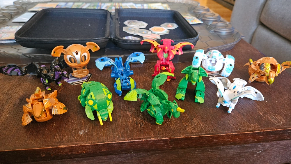 Selling a Bakugan lot! Includes 40 cards, 11 figures, battle arena and a carrying case. Great for any Bakugan fan!