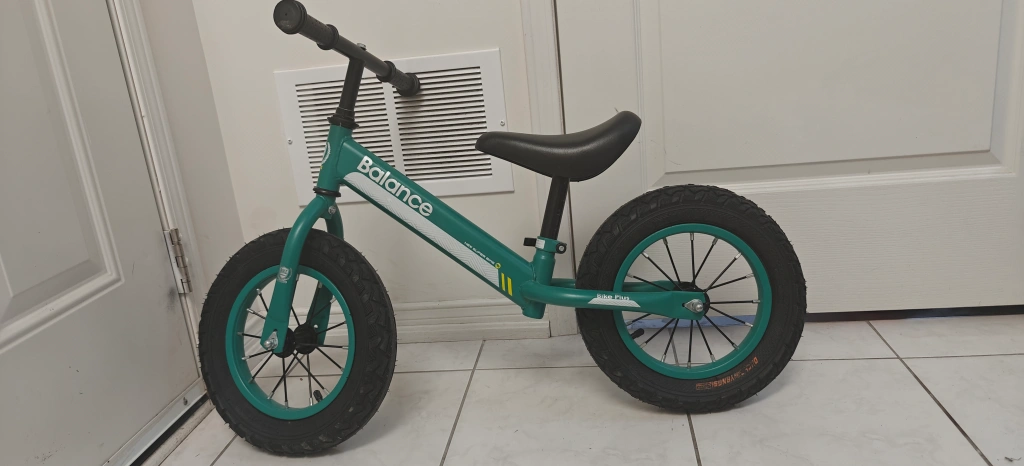 Toddler Balance Bike 1 to 4 Years Old, 12 Inch Push Bicycle with Customized Seat Adjustment Steady Balancing Note: Never used Selling a balance bike in great condition! It's perfect for helping your little one learn to balance before transitioning to a pedal bike. The bike is a nice green colour and has a comfortable seat for kids. It's lightweight and easy for them to manoeuvre. Great for kids learning to ride!