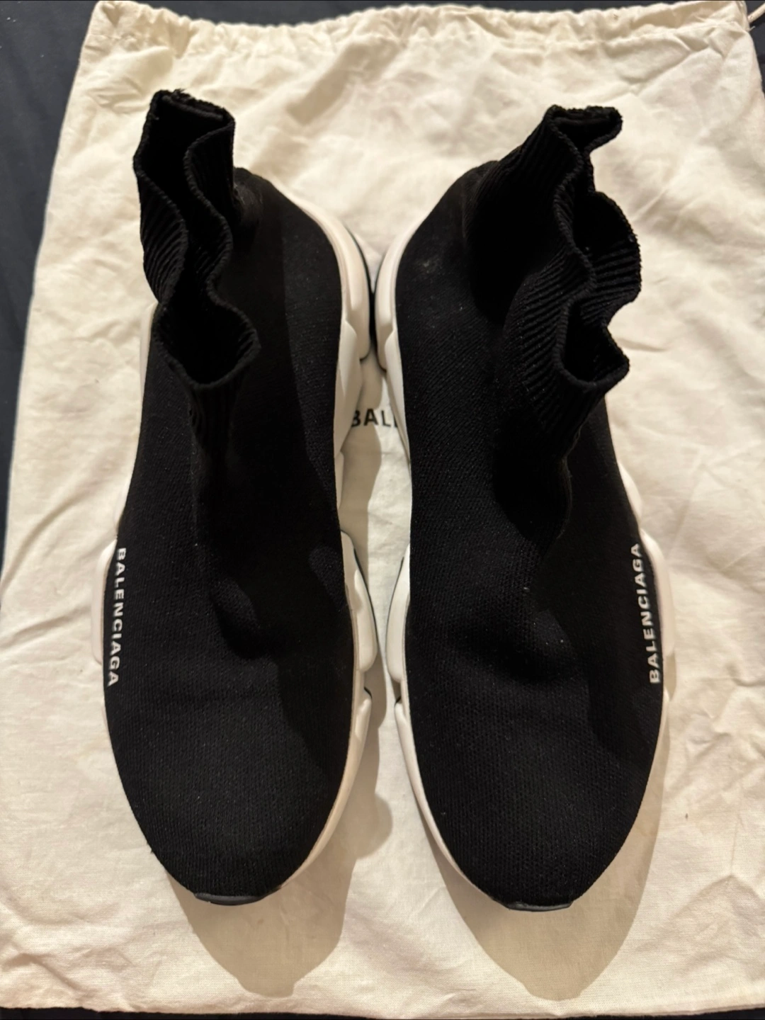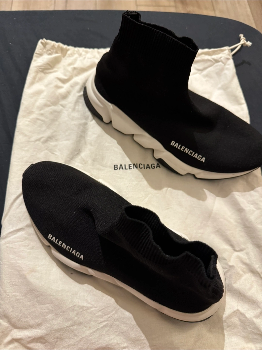 Selling a pair of Balenciaga Speed Trainer sneakers! They're in great condition and super comfy. The iconic sock-like design makes them a stylish and unique addition to any wardrobe. Perfect for adding a touch of high-fashion to your everyday look!