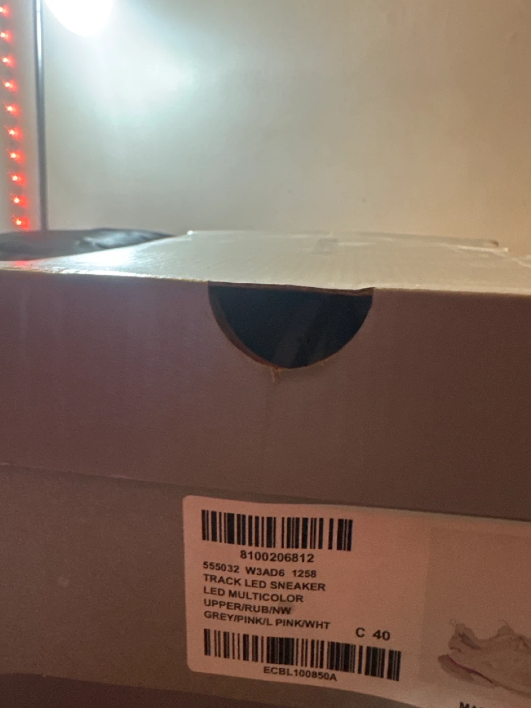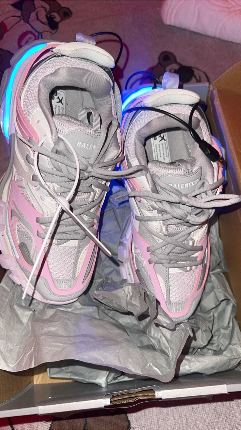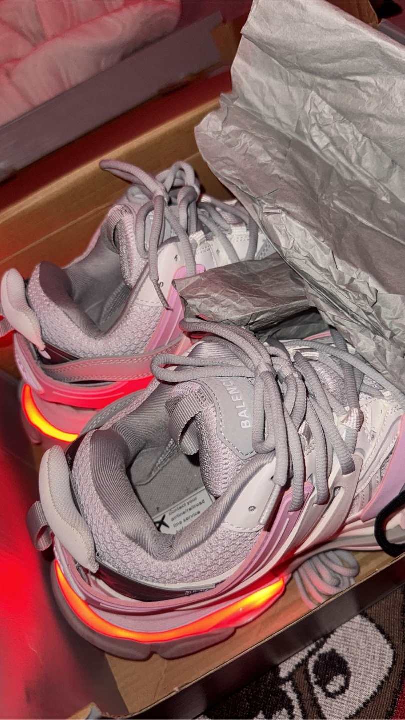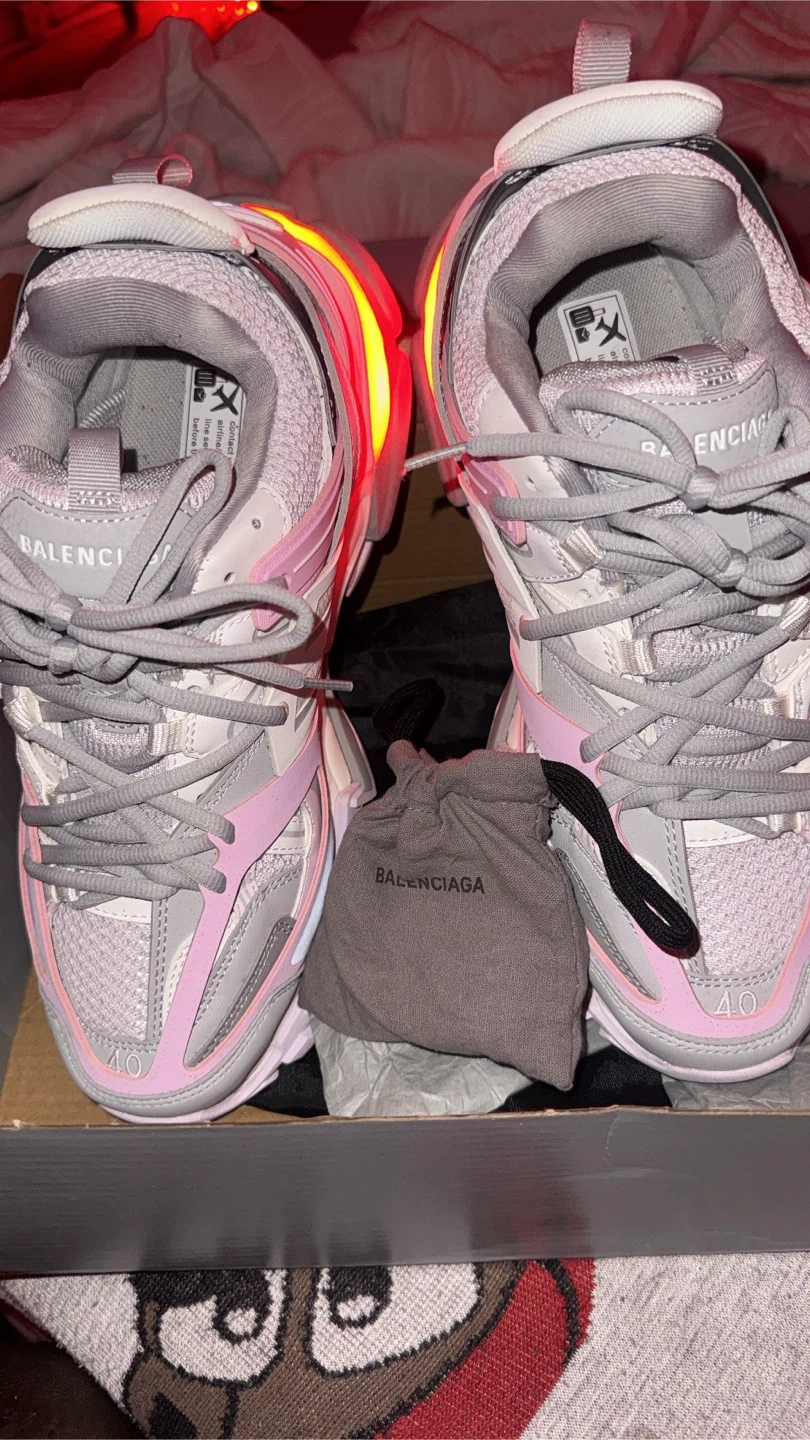 60Balenciaga Track LED sneakers in size 40. These sneakers come in a grey, pink, and white colourway. The original box is included