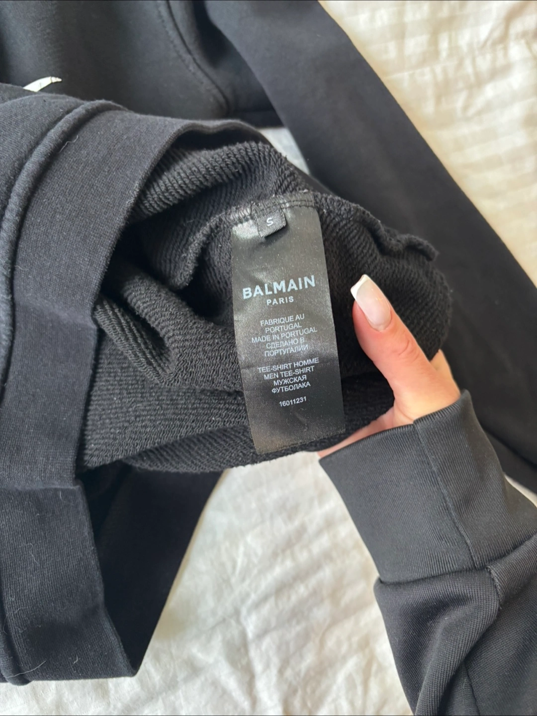 Selling a Balmain black sweatshirt in size S. It's in great condition and ready for a new home. Perfect for adding a touch of luxury to your casual wardrobe!