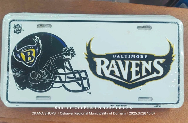 Show allBaltimore Ravens Helmet Logo License Plate - NEW - 1996 NOS NFL
